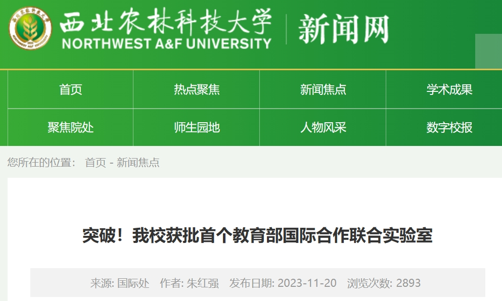 据西北农林科技大学新闻网消息,西北农林科技大学“旱区作物抗逆改良国际合作联合实验室”获批立项建设。这是西农首个获得教育部批准立项建设的国际合作联合实验室,实现了历史新突破。