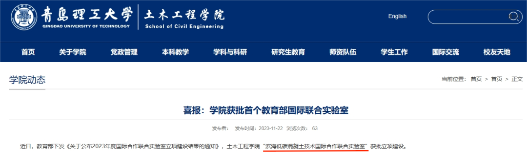 据青岛理工大学土木工程学院消息,学校“滨海低碳混凝土技术国际合作联合实验室”获批立项建设。