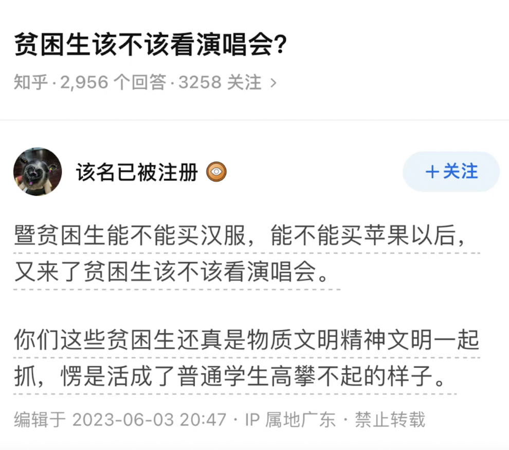 曾经有人提问,贫困生该不该看演唱会?