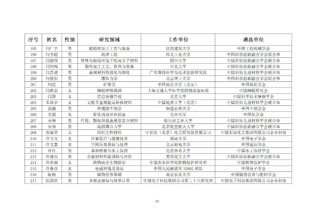 752名!第九届中国科协青年人才托举工程人选名单公示