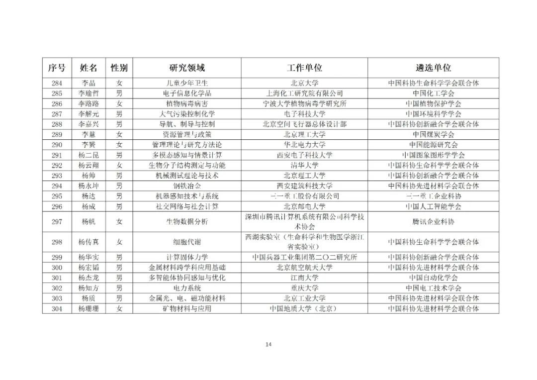 752名!第九届中国科协青年人才托举工程人选名单公示