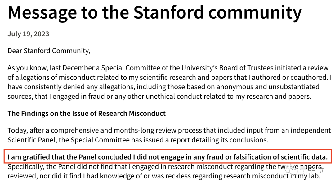 同时文章还表示,当时斯坦福在一份声明中“淡化”了拉维涅涉嫌学术不端的问题。