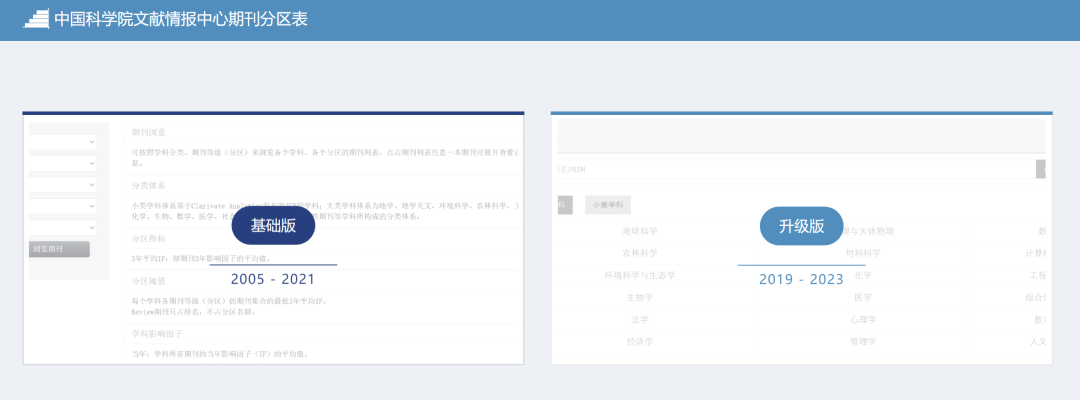 2、在期刊范围和大类学科设置等方面进行了升级和调整
