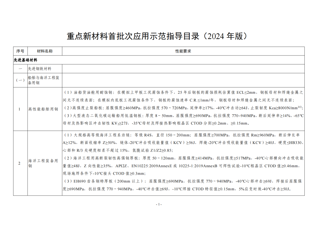 12月22日,工业和信息化部发布《工业和信息化部关于发布重点新材料首批次应用示范指导目录(2024年版)的通告》(以下简称“《目录》”)。