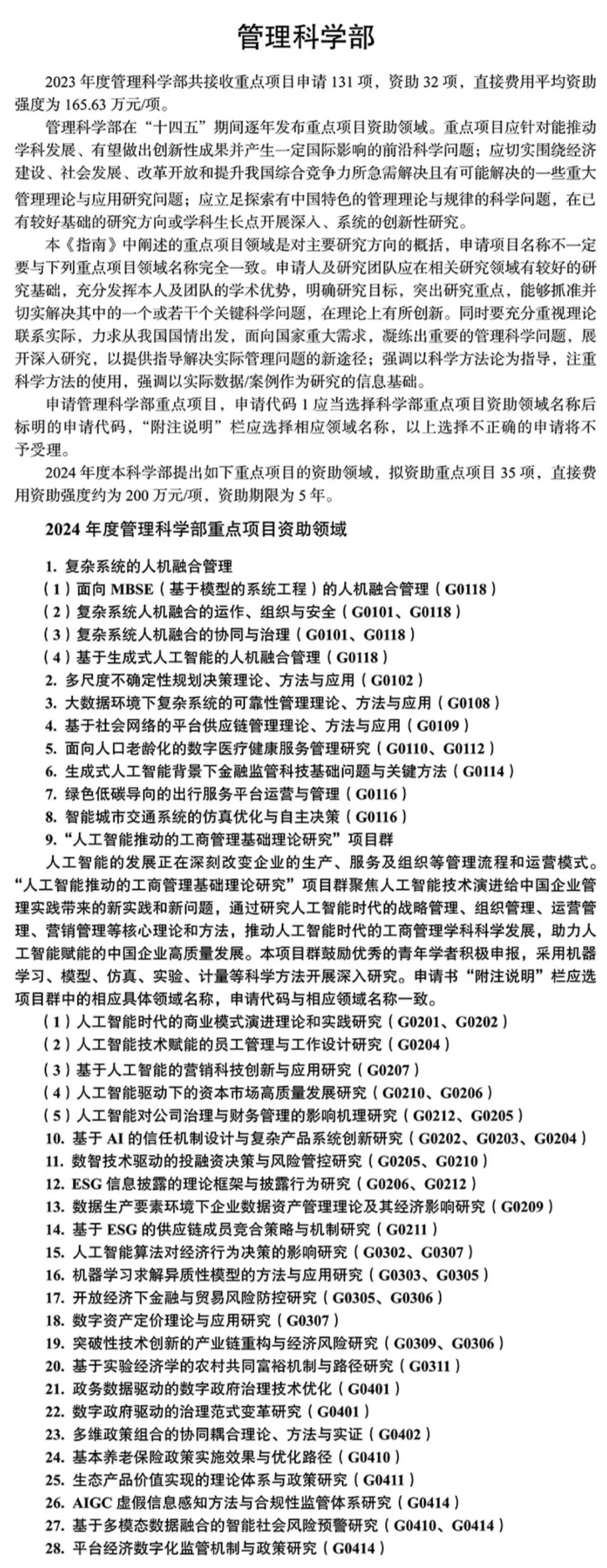 近日,《2024年度国家自然科学基金项目指南》正式发布,其中重点项目支持从事基础研究的科学技术人员针对已有较好基础的研究方向或学科生长点开展深入、系统的创新性研究,促进学科发展,推动若干重要领域或科学前沿取得突破。为更好地服务广大科技工作者,小编对指南中各学部重点项目的优先资助领域进行了梳理,仅供参考。具体内容请参见国家自然科学基金委员会官方网站。