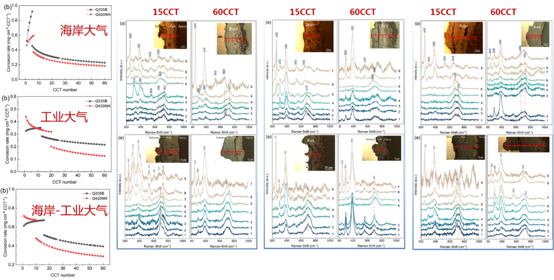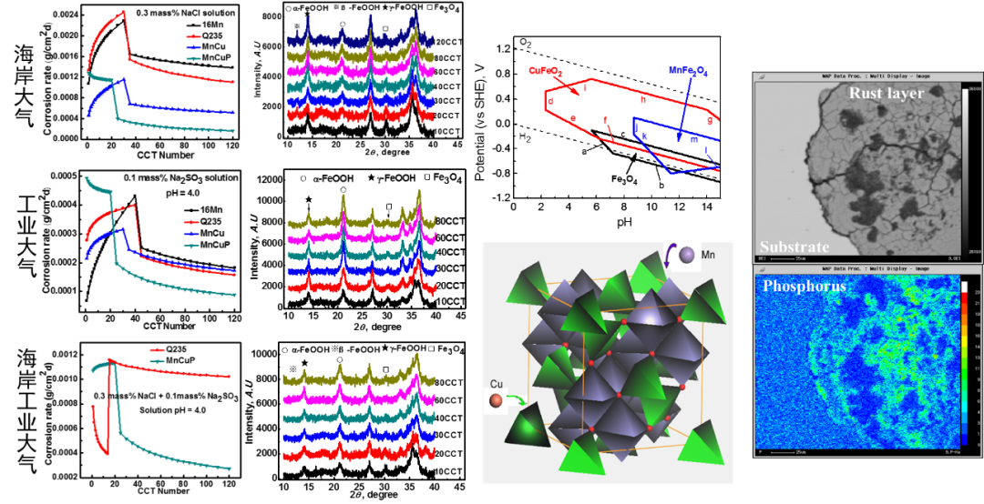 揭示了典型耐候钢在模拟海岸、工业、海岸-工业三种典型大气环境下的腐蚀及锈层演化机制;