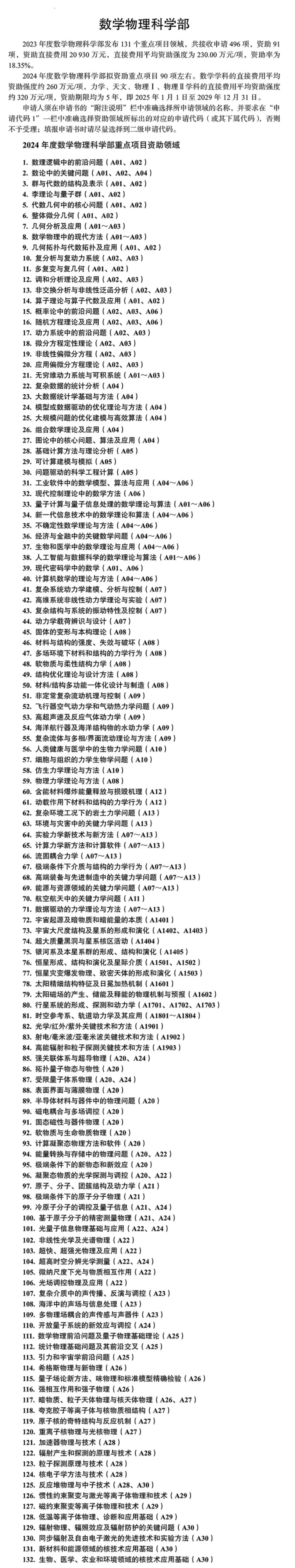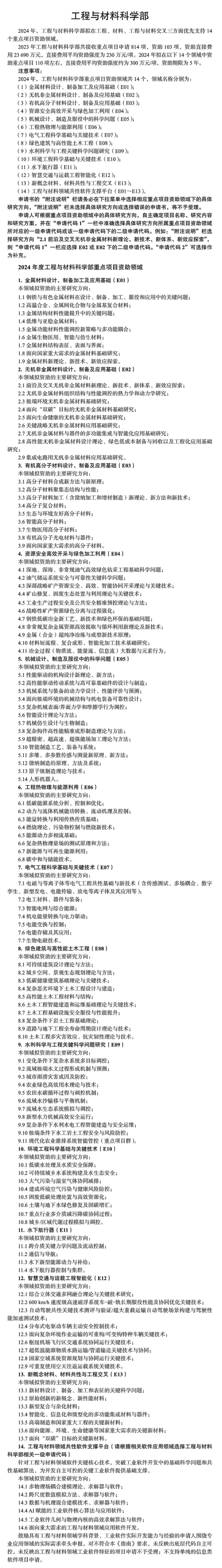 化学科学部 工程与材料科学部 数学物理科学部 生命科学部 地球科学部 信息科学部 管理科学部 医学科学部