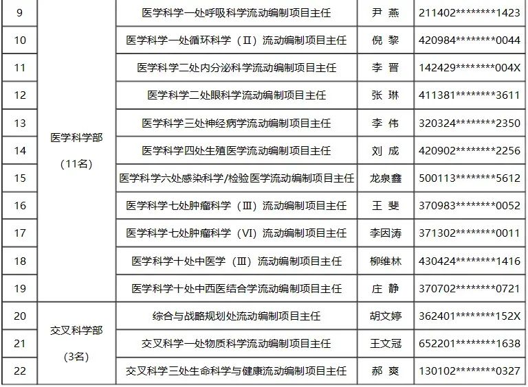 2024年国家自然科学基金委员会流动编制工作人员考察人选名单