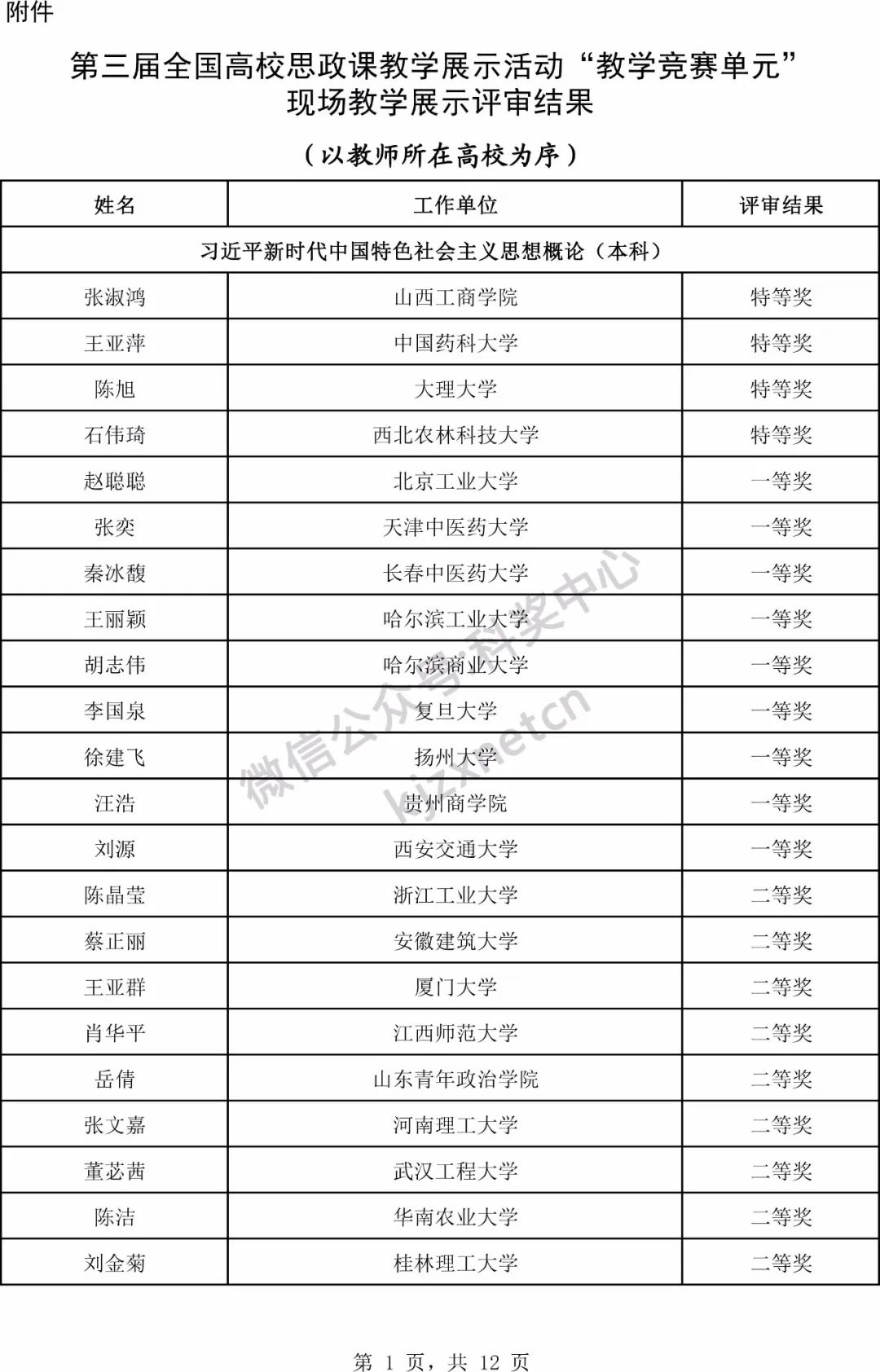 根据《教育部办公厅关于开展第三届全国高校思想政治理论课教学展示活动的通知》(教社科厅函〔2023〕25号),经我司组织专家严格评审,现将“教学竞赛单元”评审结果予以公示。公示期为2024年2月18日至2月22日。