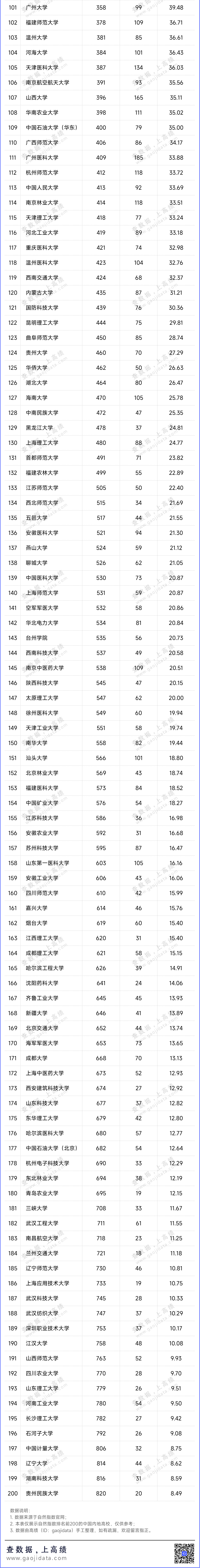 中国内地高校TOP200