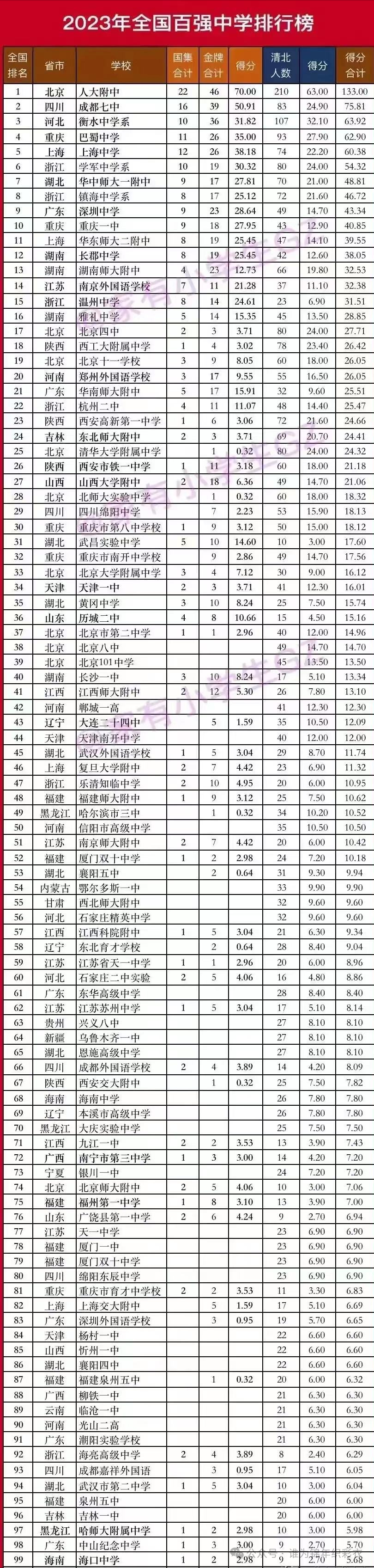 不知道各位对于这样一份按照竞赛和考入清北的人数来评选的全国百强高中榜单,各位有何看法呢?欢迎关注评论转发,我们一起交流~