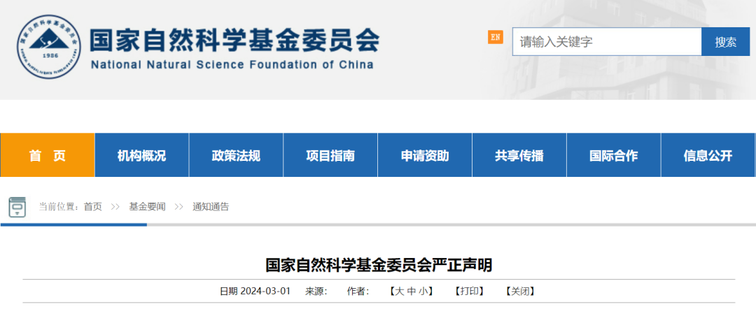 国家自然科学基金委员会严正声明