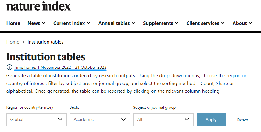 自然指数(Nature Index)于2014年11月首次发布,是依托于全球顶级期刊(《自然》系列、《科学》《细胞》、医学等145种期刊),统计各高校、科研院所(国家)在国际上最具影响力的研究型学术期刊上发表论文数量的数据库。