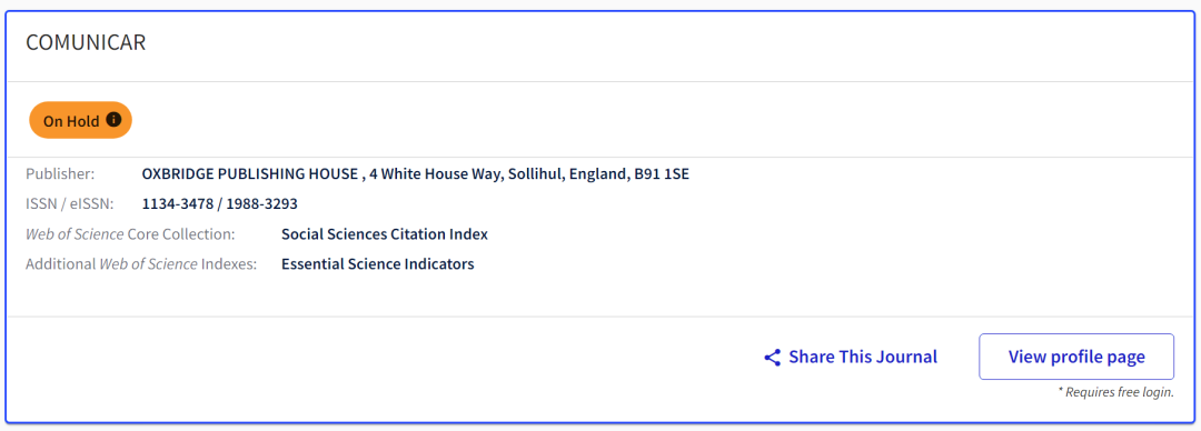 据最新消息,Comunicar已被科睿唯安官方标记为On Hold!