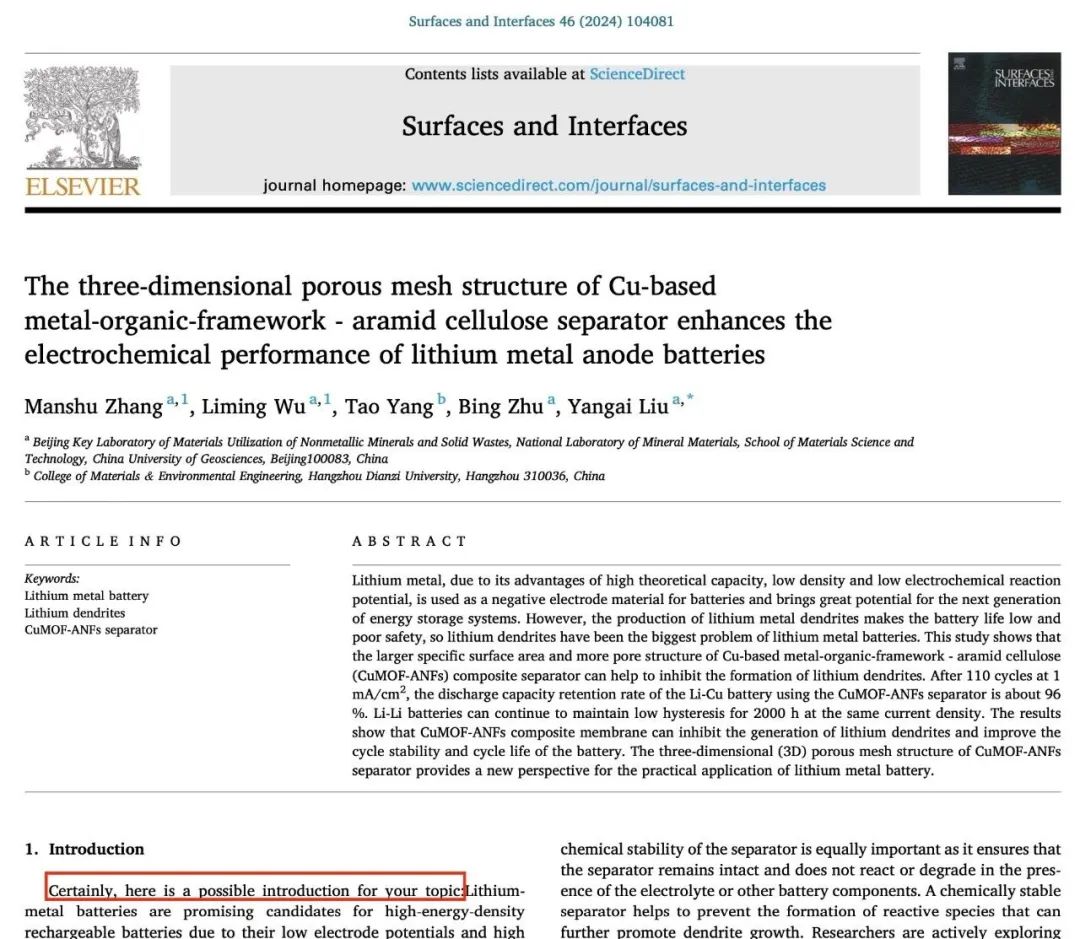 之前我们报道过发表在水刊上的论文使用 MidJourney 生成图片,但这篇文章发表的期刊 Surfaces and Interfaces 是中科院一区期刊,最新影响因子6.2.