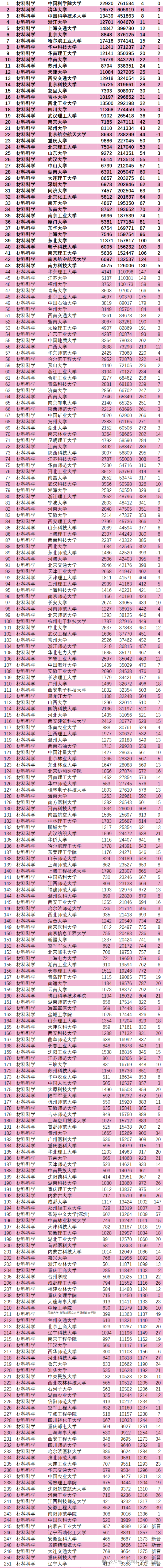 材料科学学科ESI上榜高校名单