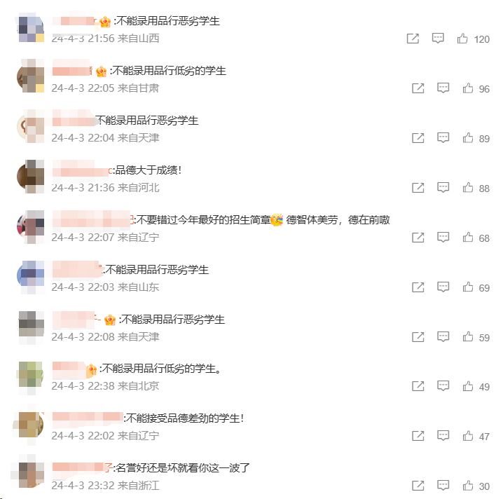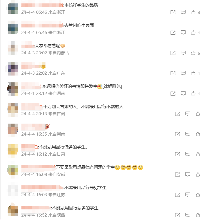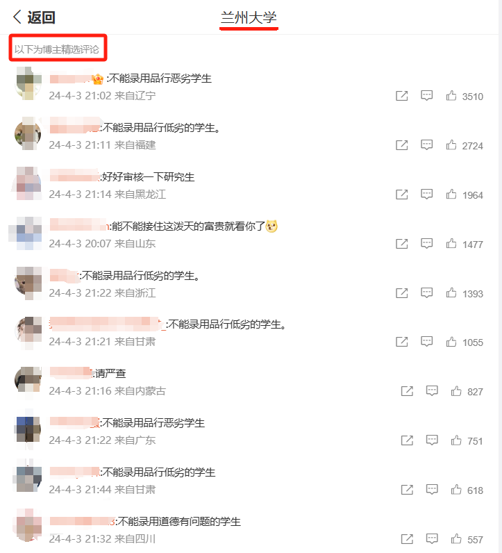 现在,有很多网友去兰州大学的官微上呼吁不要录取,兰州大学官微也大量精选了这方面评论: