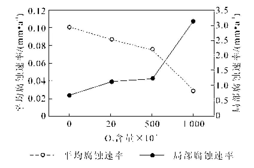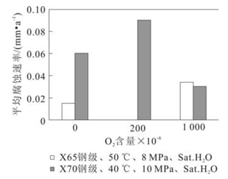 图3 超临界CO2环境中O2含量对管线钢腐蚀速率的影响