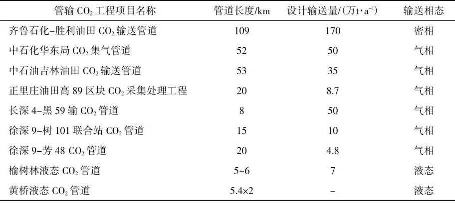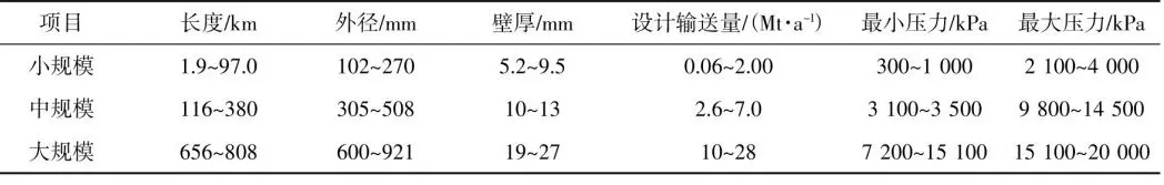 二氧化碳捕集、运输与地质封存技术委员会(CCS)对全球CO2输送管道进行了统计,如表1所示,并根据管道输送里程、设计输量等方面将其规模划分为三级,目前全球已建成的CO2输送管道约一半为超临界/密相输送,单条管道输送量最高可达28 Mt/a。