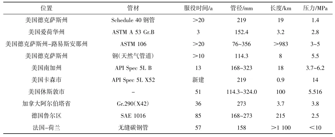 表4 北美地区部分超临界CO2输送管道设计参数及用管情况