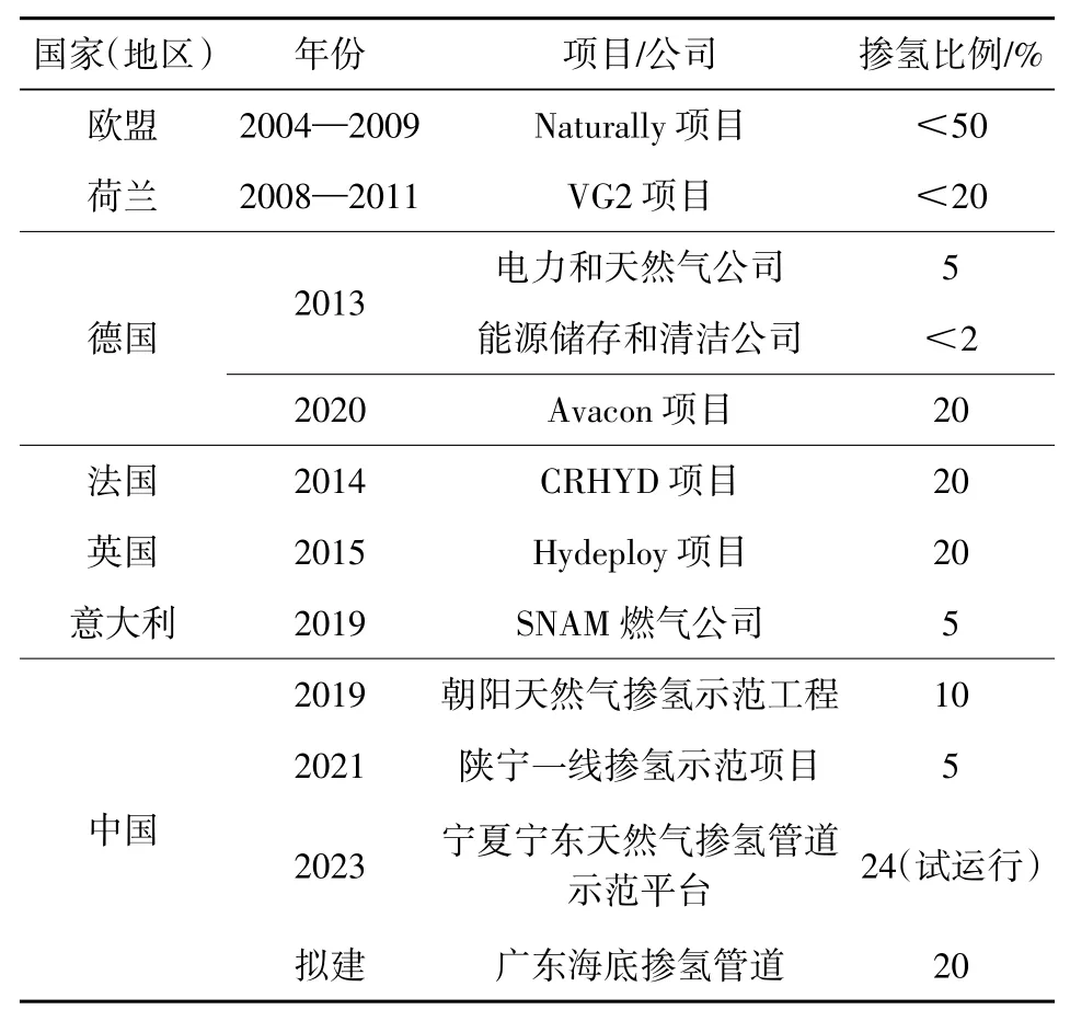 表8 各国管道掺氢输送项目中的掺氢比例(部分)