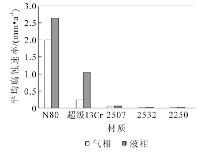 图7 不同材质在气相和液相中的平均腐蚀速率