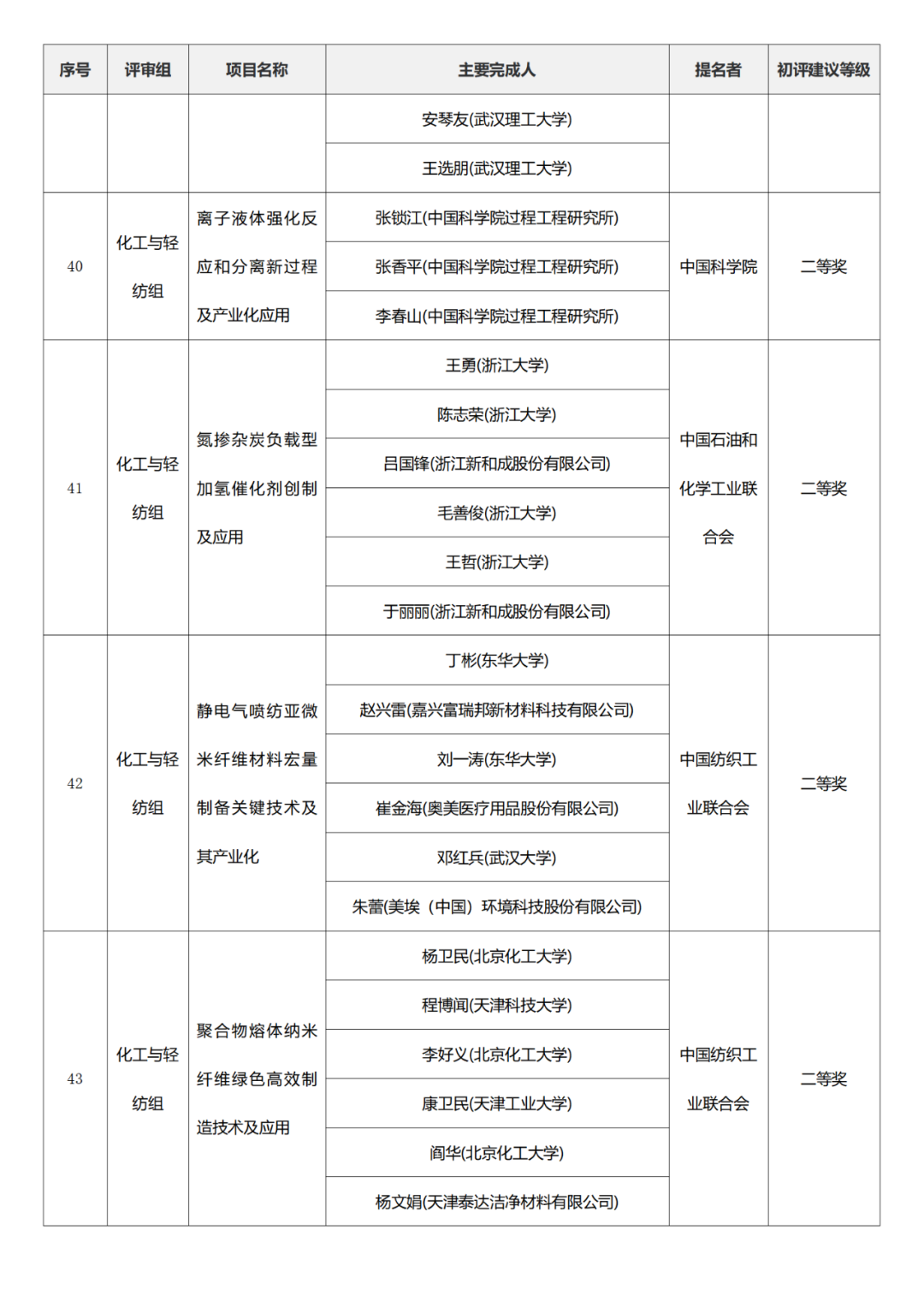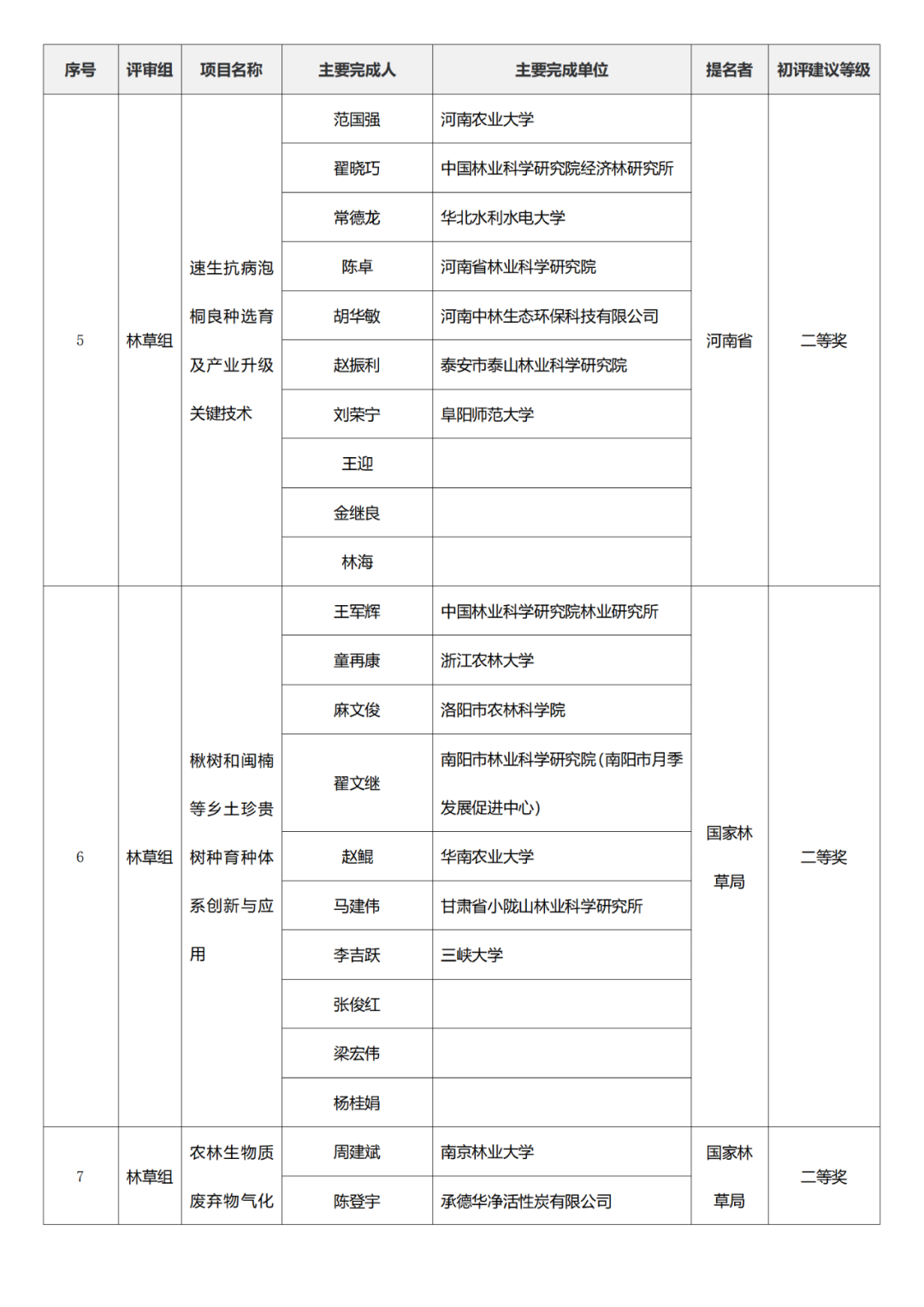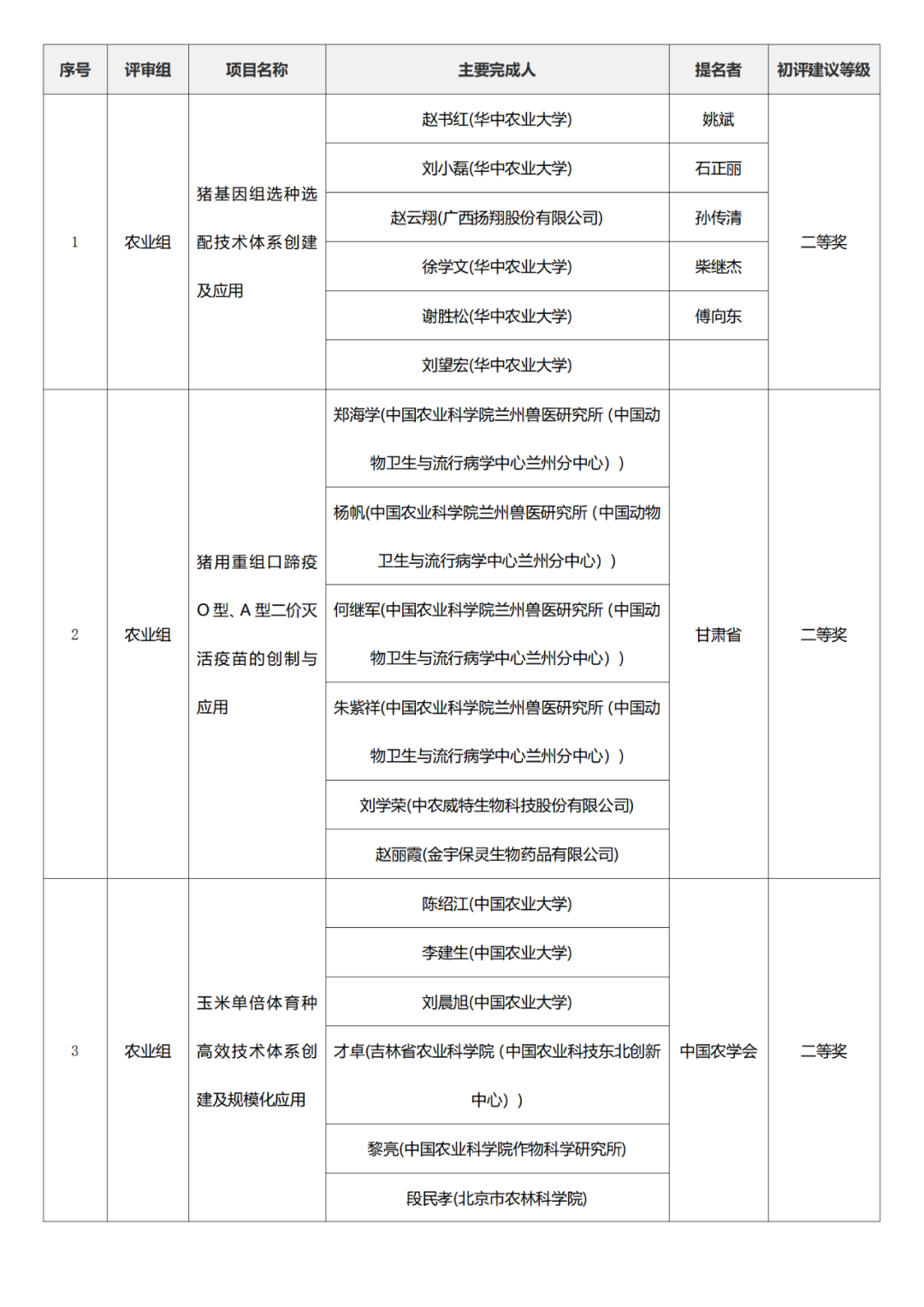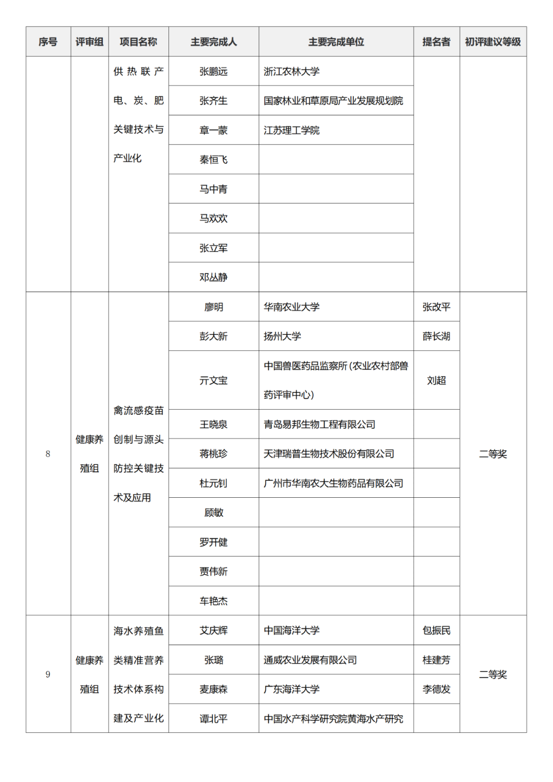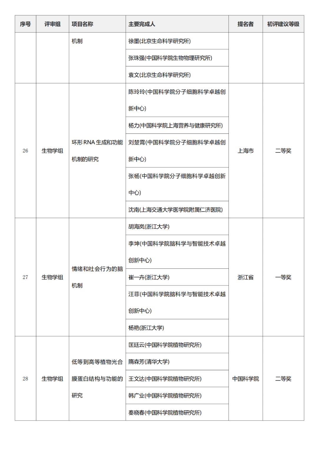 国家科学技术进步奖项目中,浙江工业大学、四川大学、上海交通大学、西安电子科技大学、清华大学、吉林农业大学初评建议等级获一等奖。