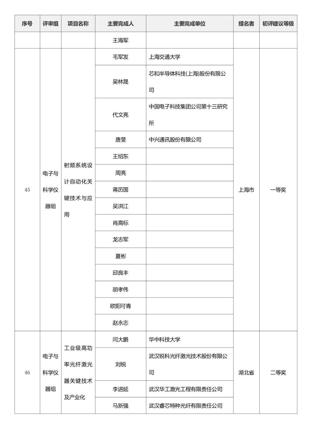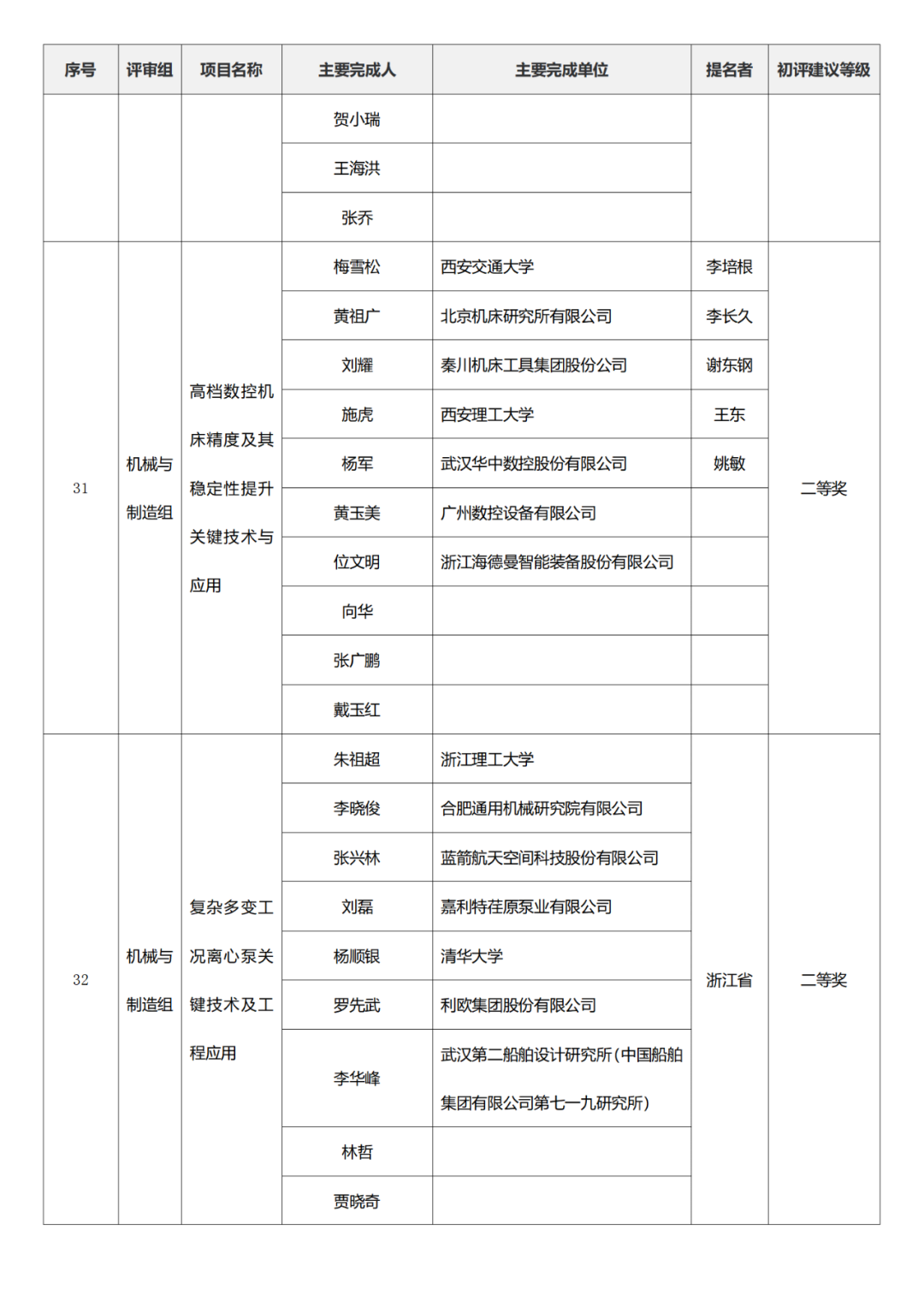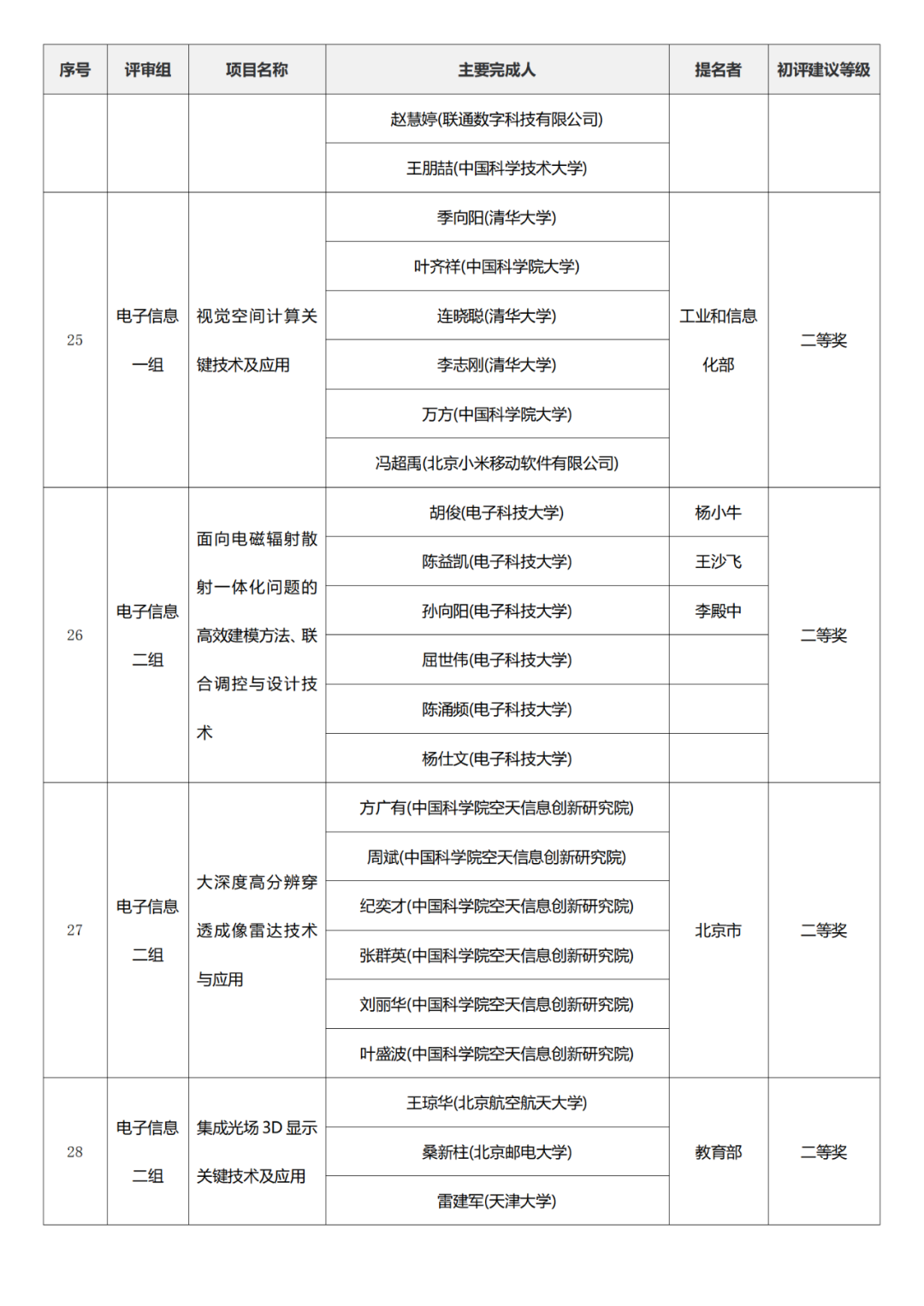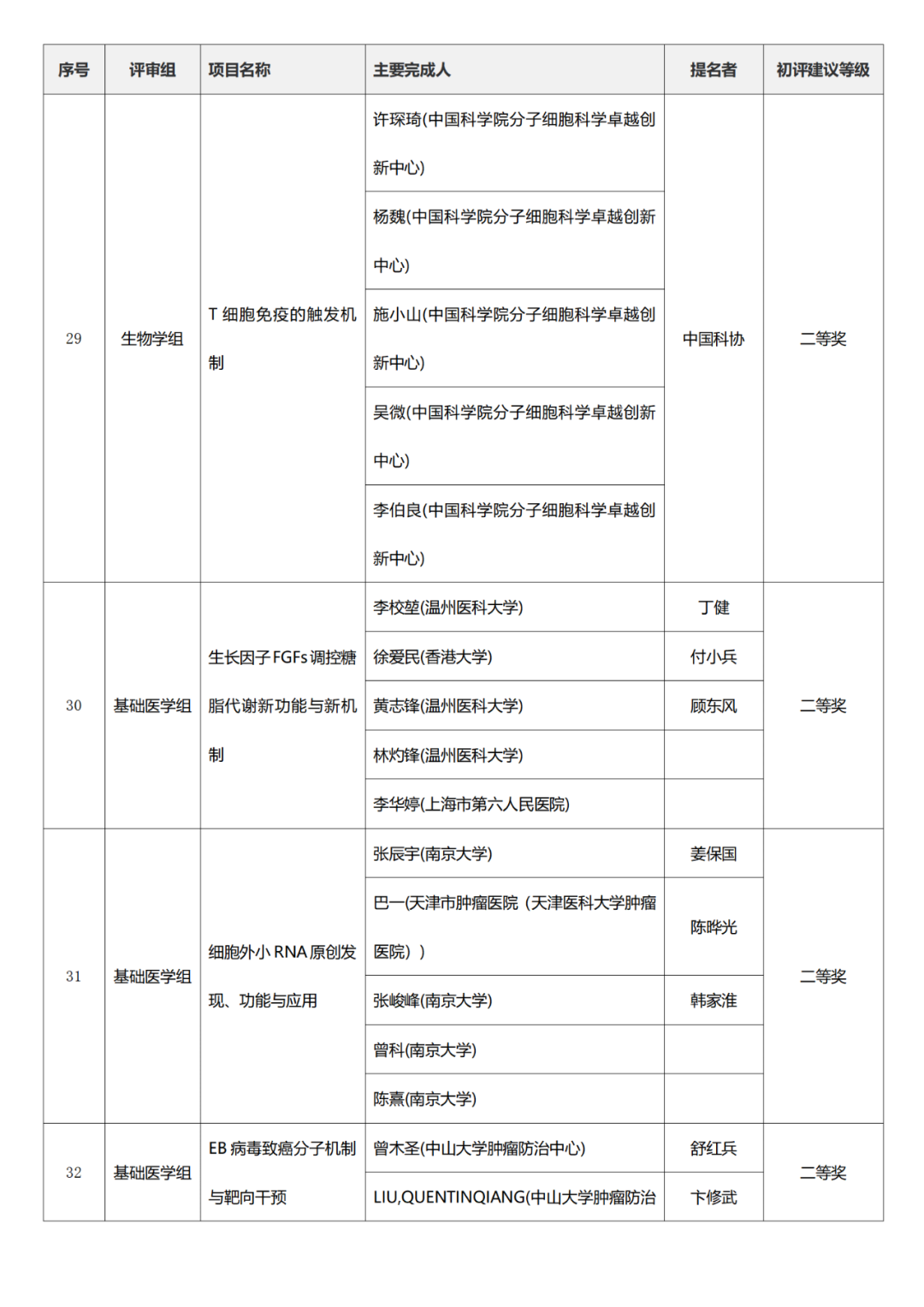 国家科学技术进步奖项目中,浙江工业大学、四川大学、上海交通大学、西安电子科技大学、清华大学、吉林农业大学初评建议等级获一等奖。