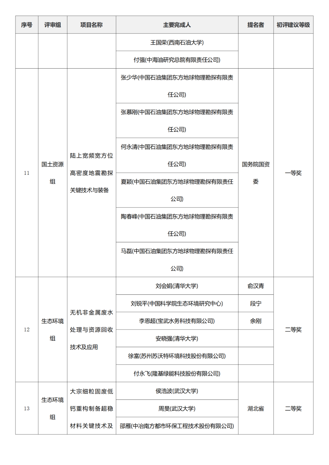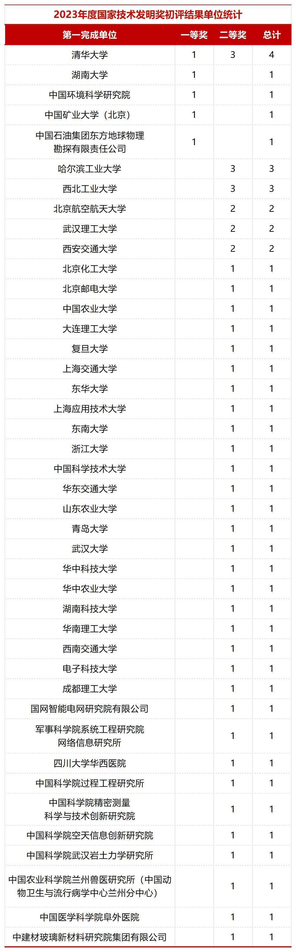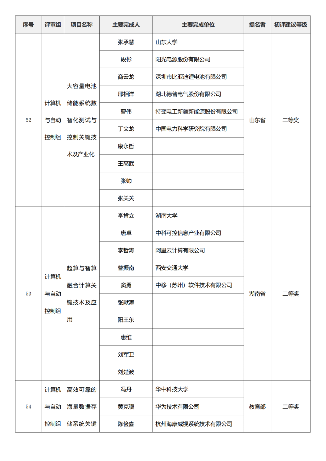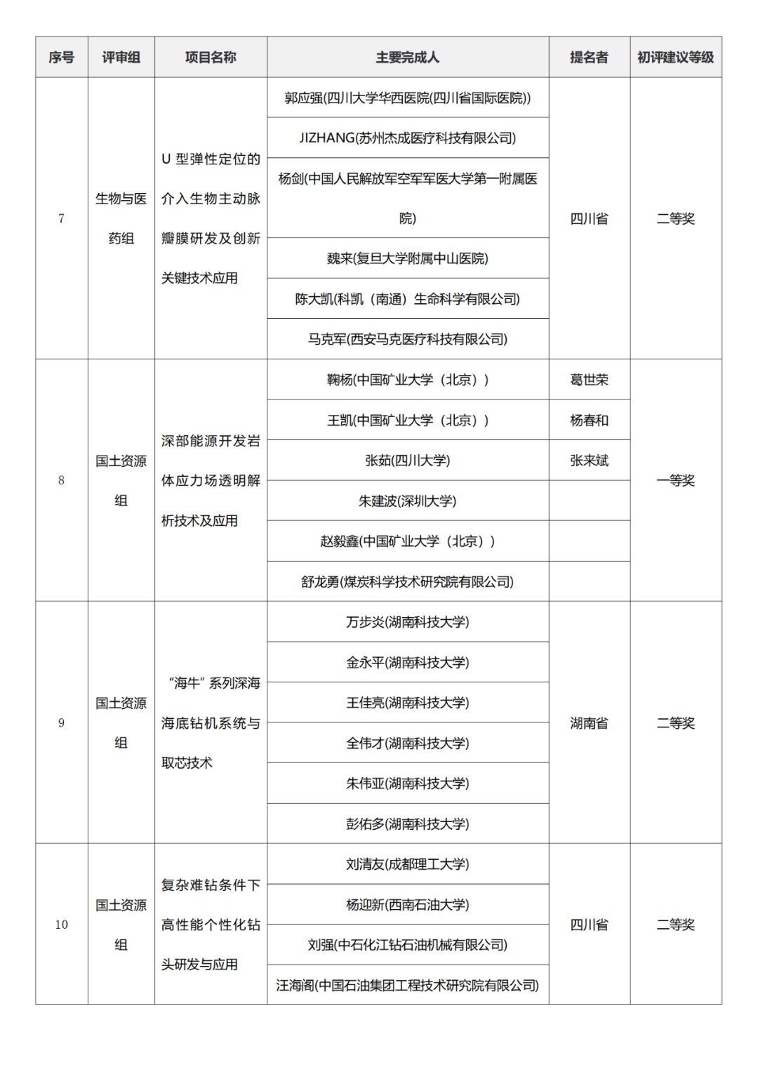 国家技术发明奖项目中,湖南大学、清华大学、中国矿业大学(北京)初评建议等级获一等奖。