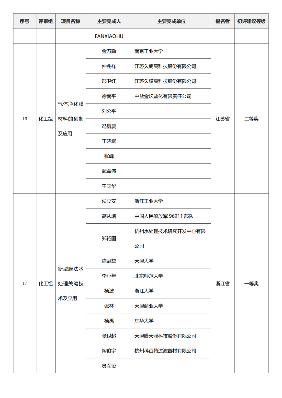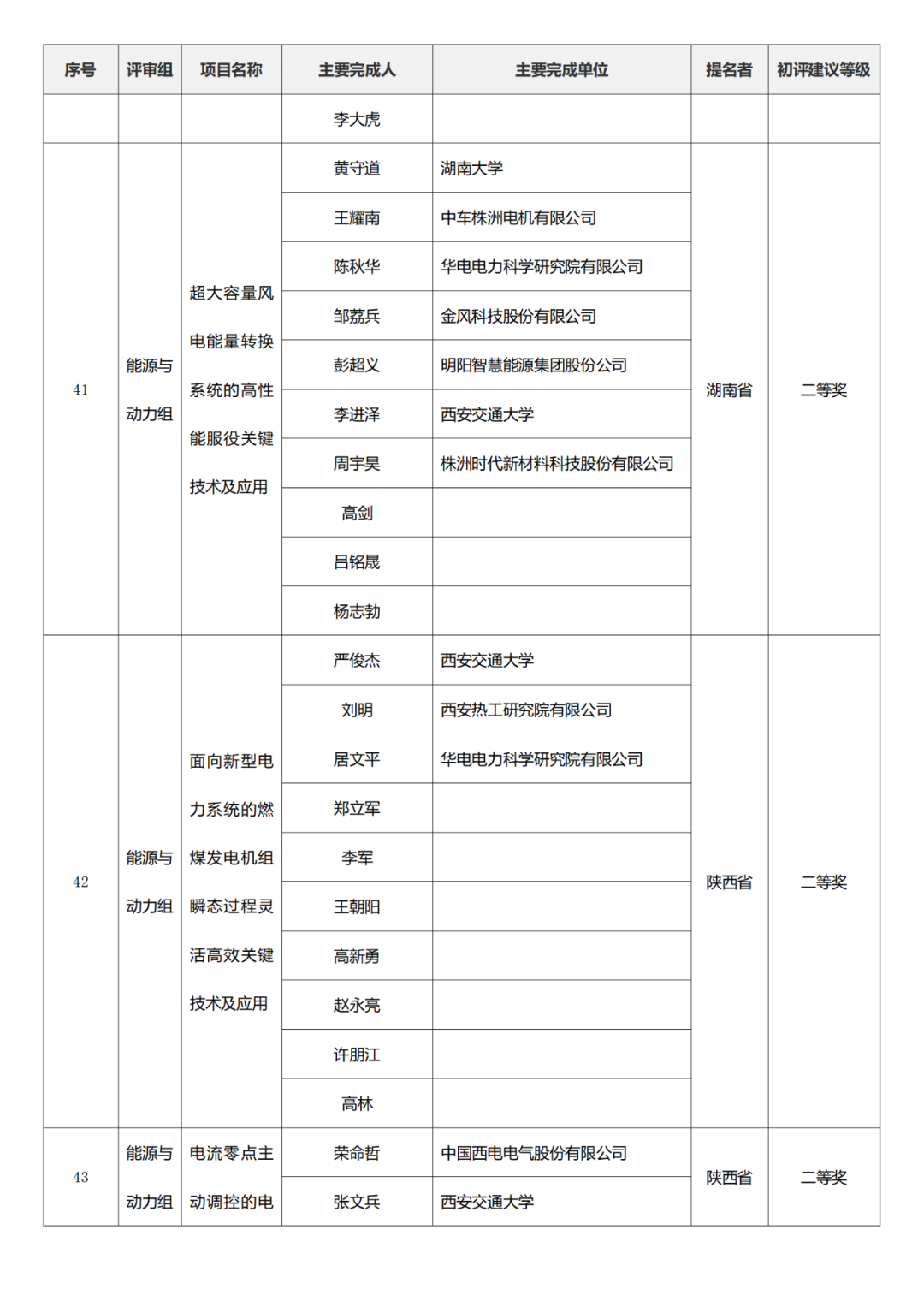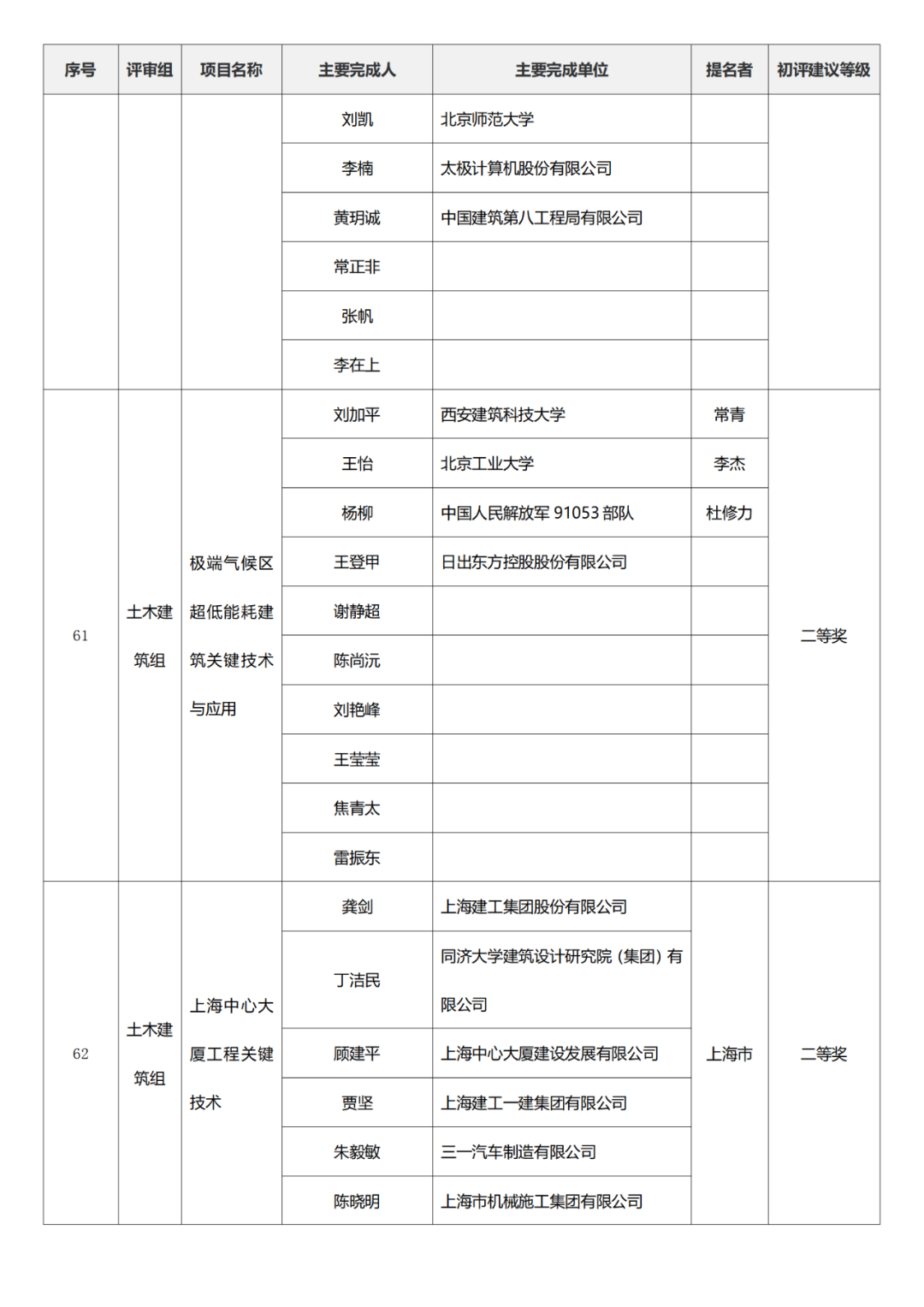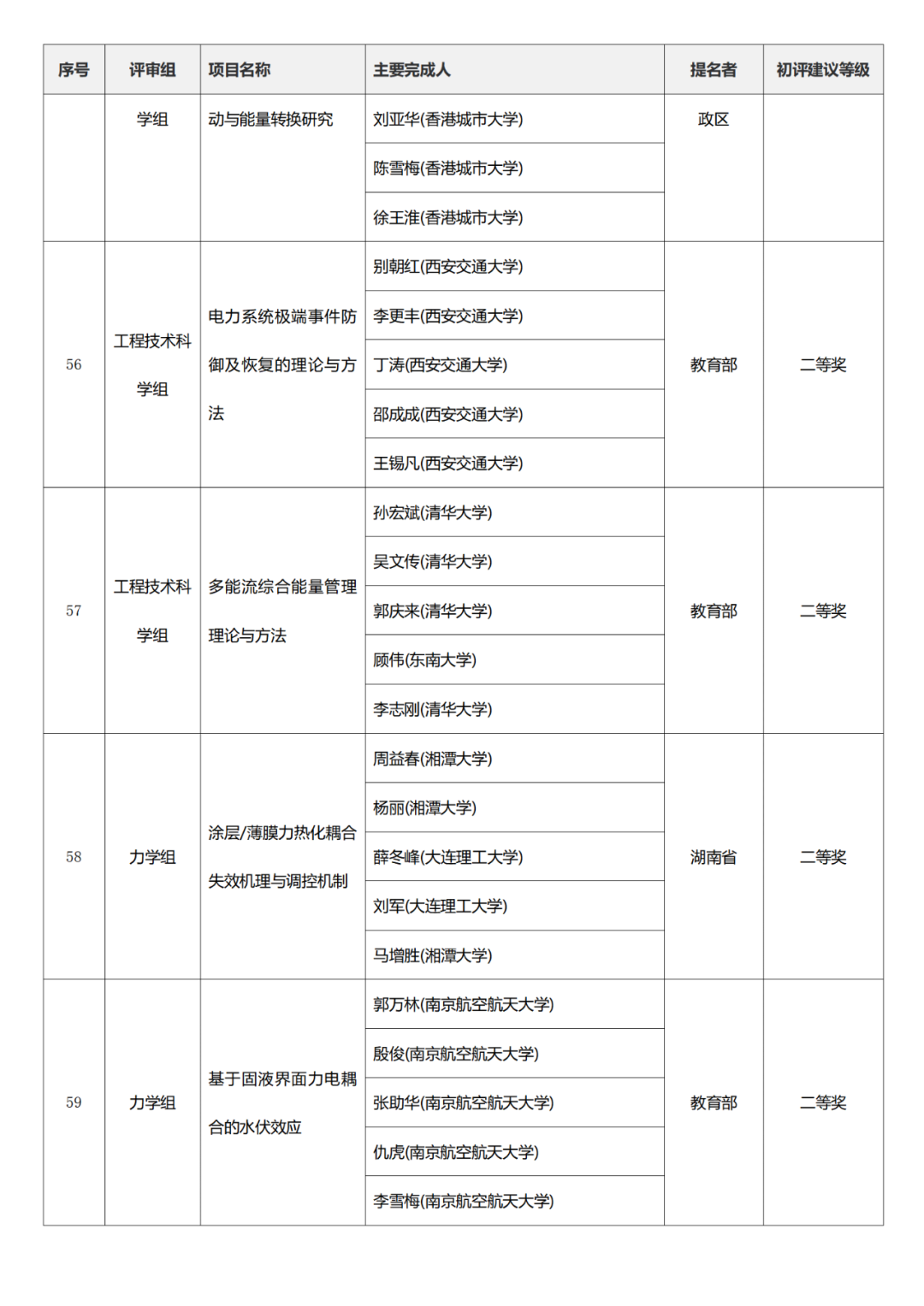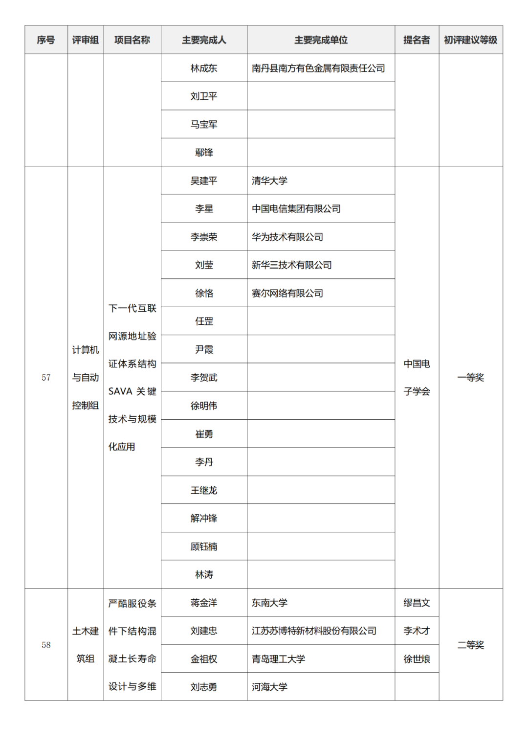 国家技术发明奖项目中,湖南大学、清华大学、中国矿业大学(北京)初评建议等级获一等奖。