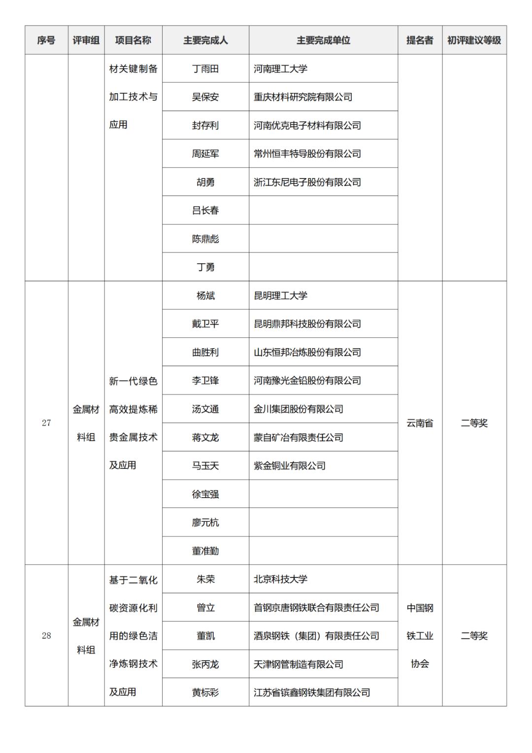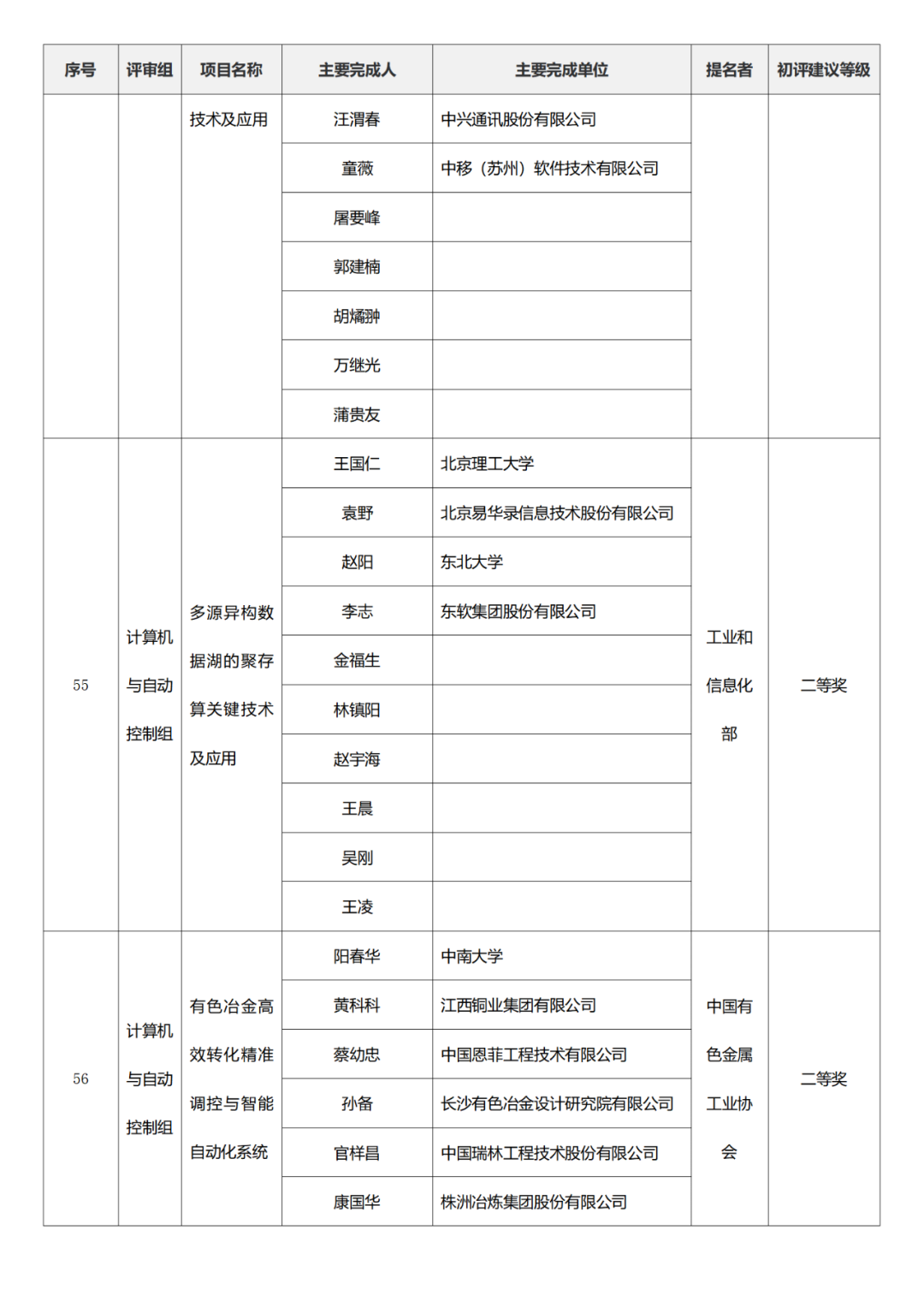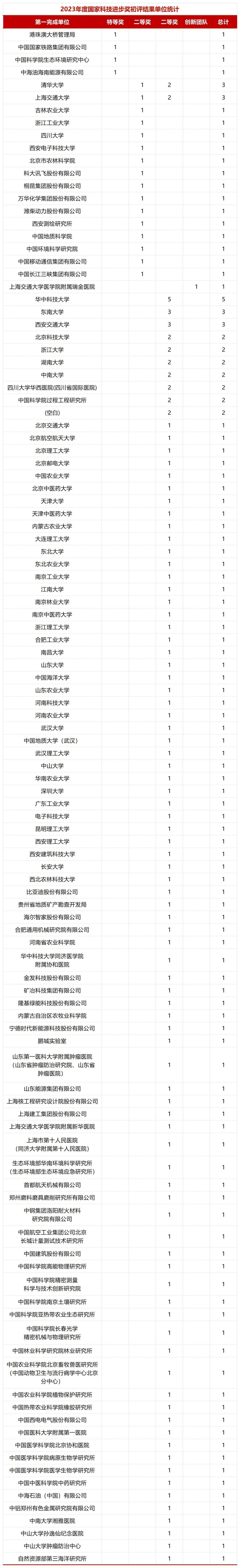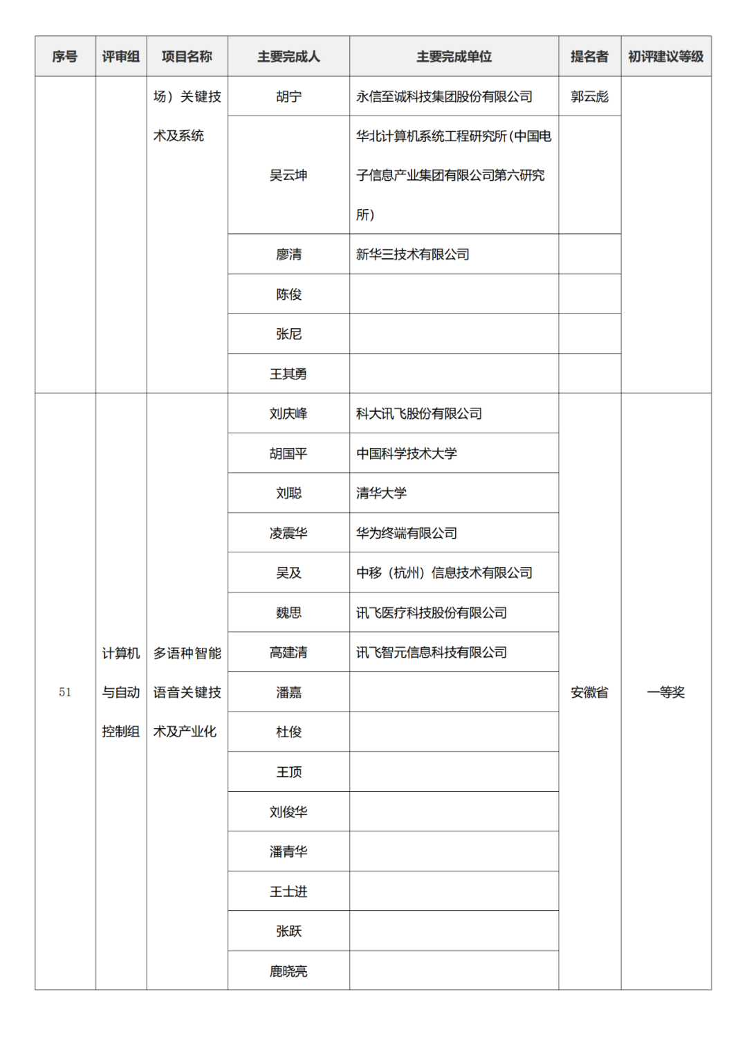 国家技术发明奖项目中,湖南大学、清华大学、中国矿业大学(北京)初评建议等级获一等奖。