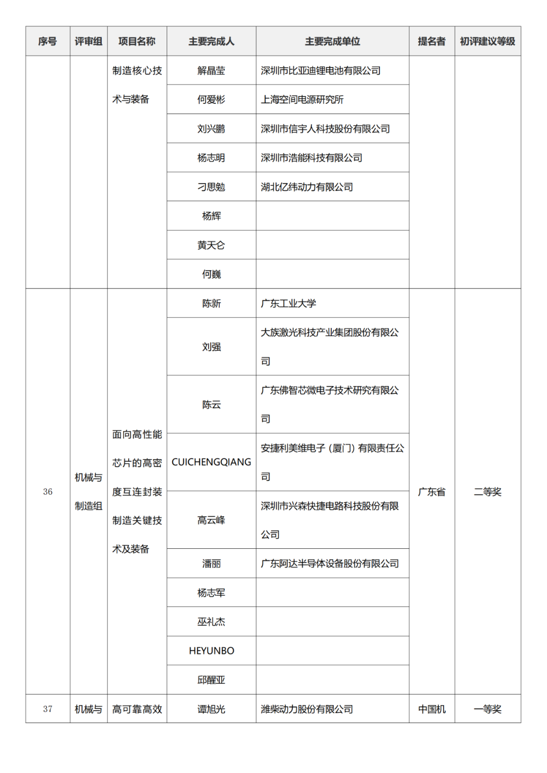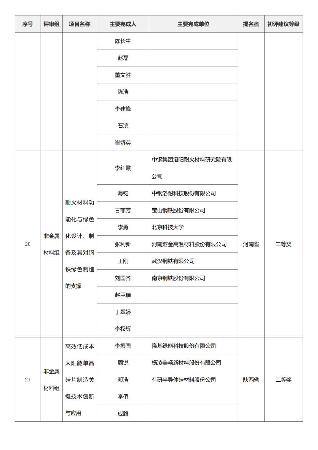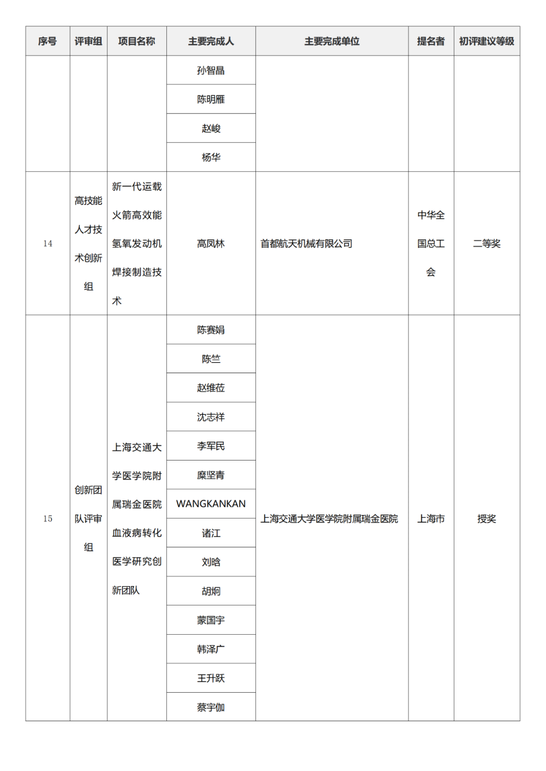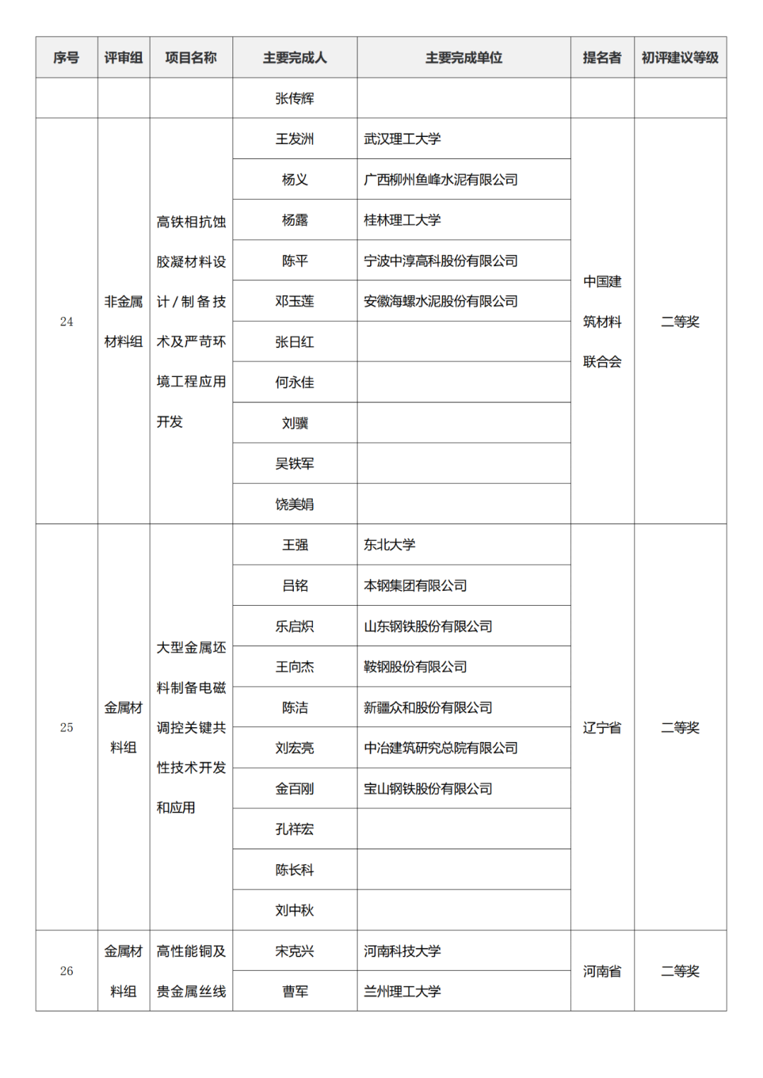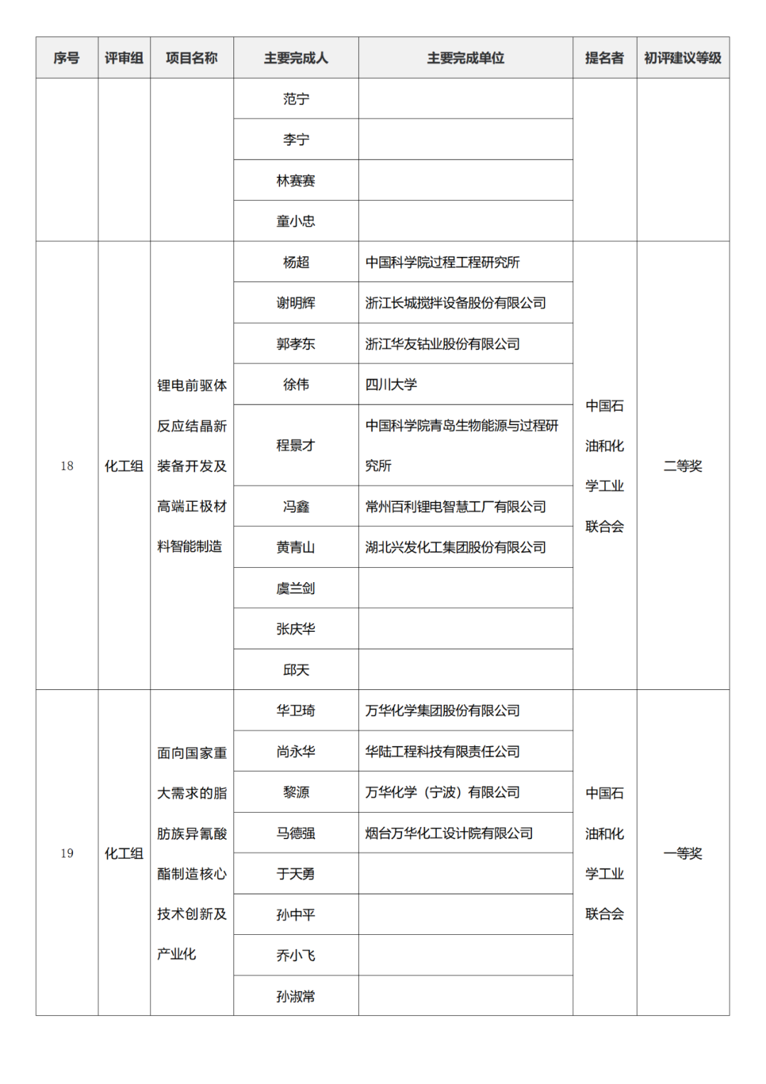 国家技术发明奖项目中,湖南大学、清华大学、中国矿业大学(北京)初评建议等级获一等奖。