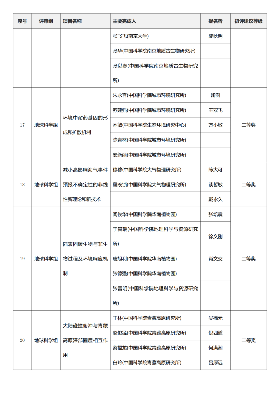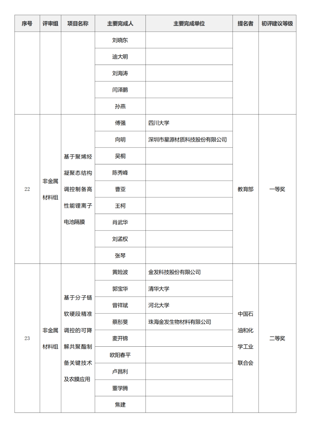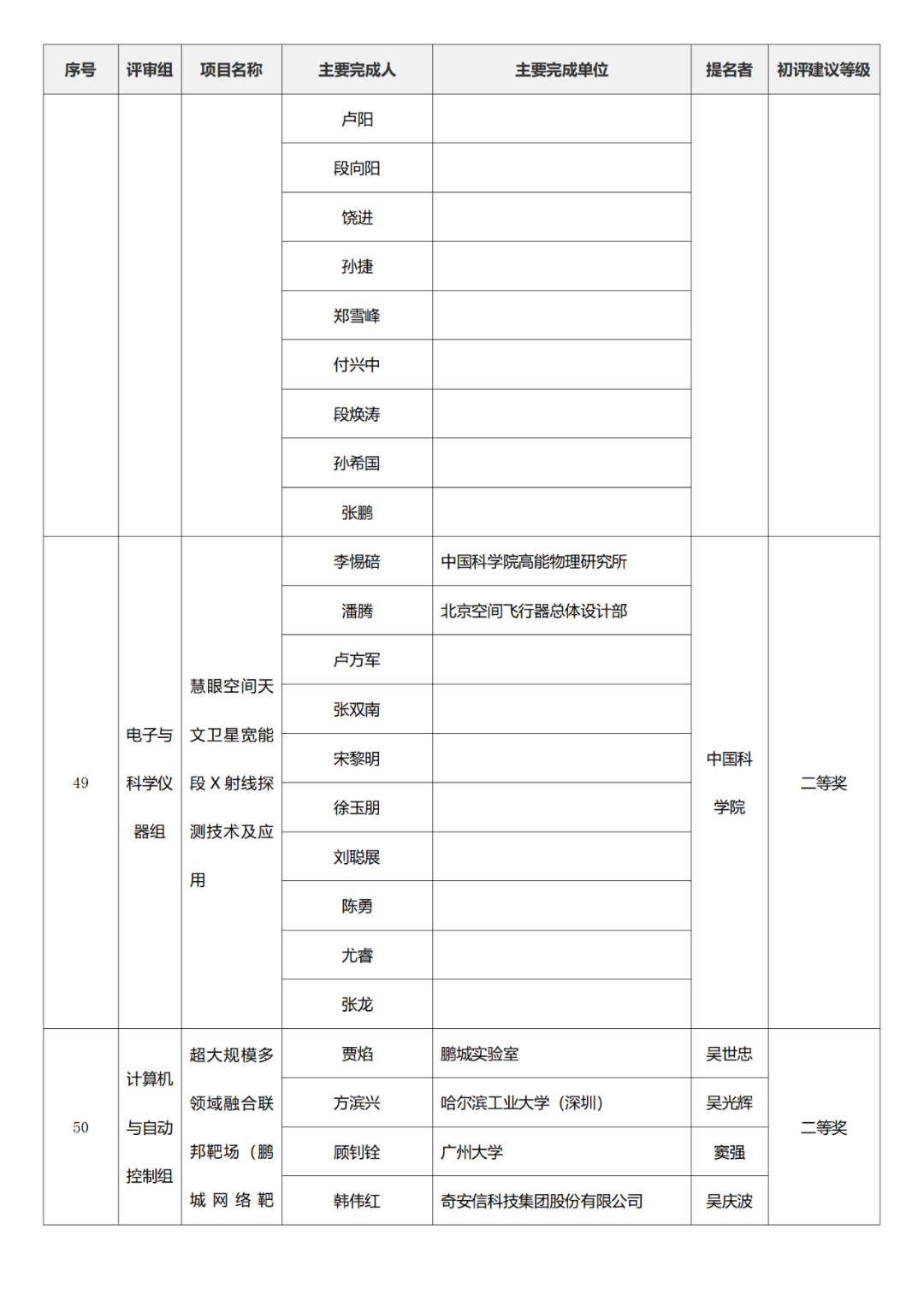2023年度国家科学技术奖初评名单