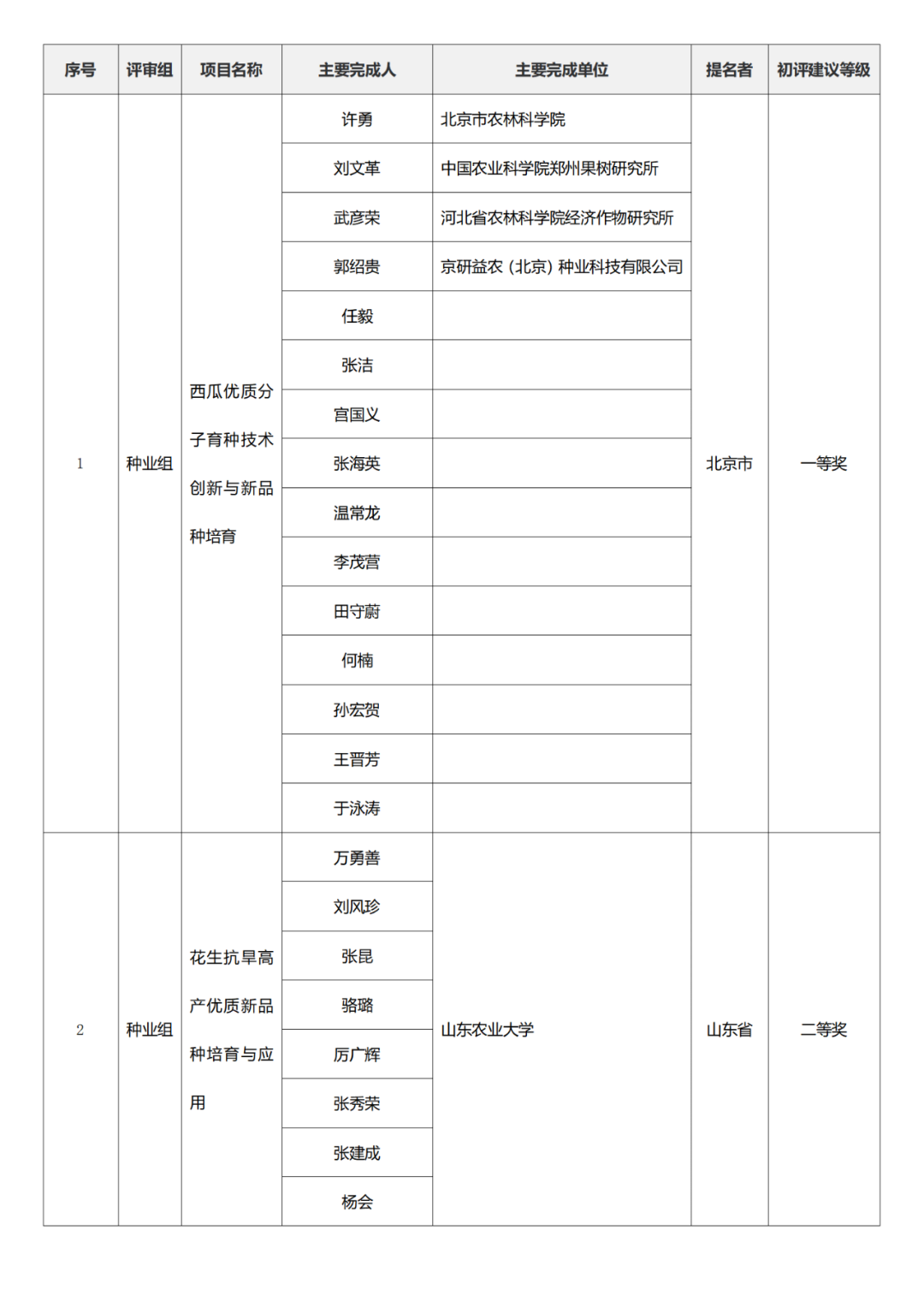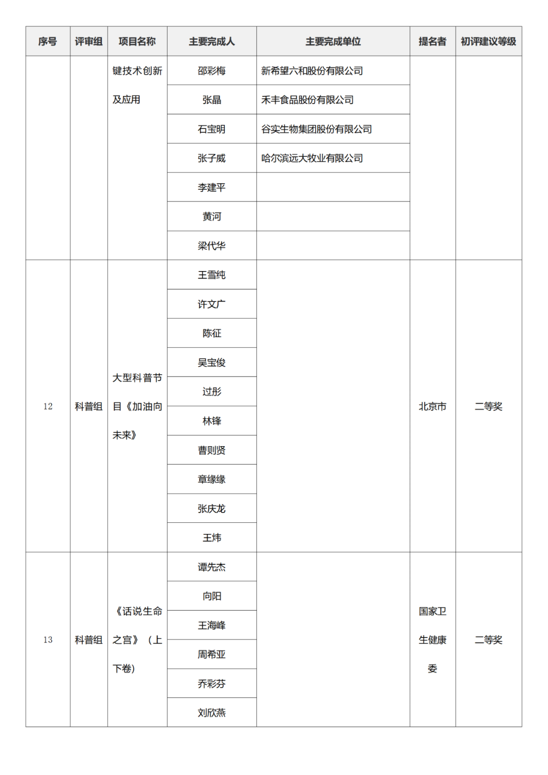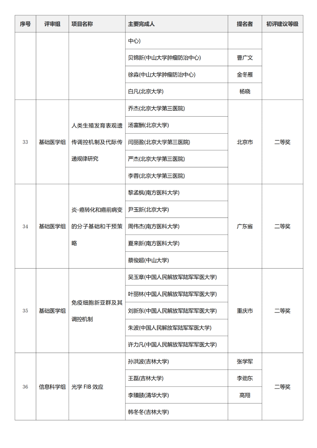 2023年度国家科学技术奖初评名单