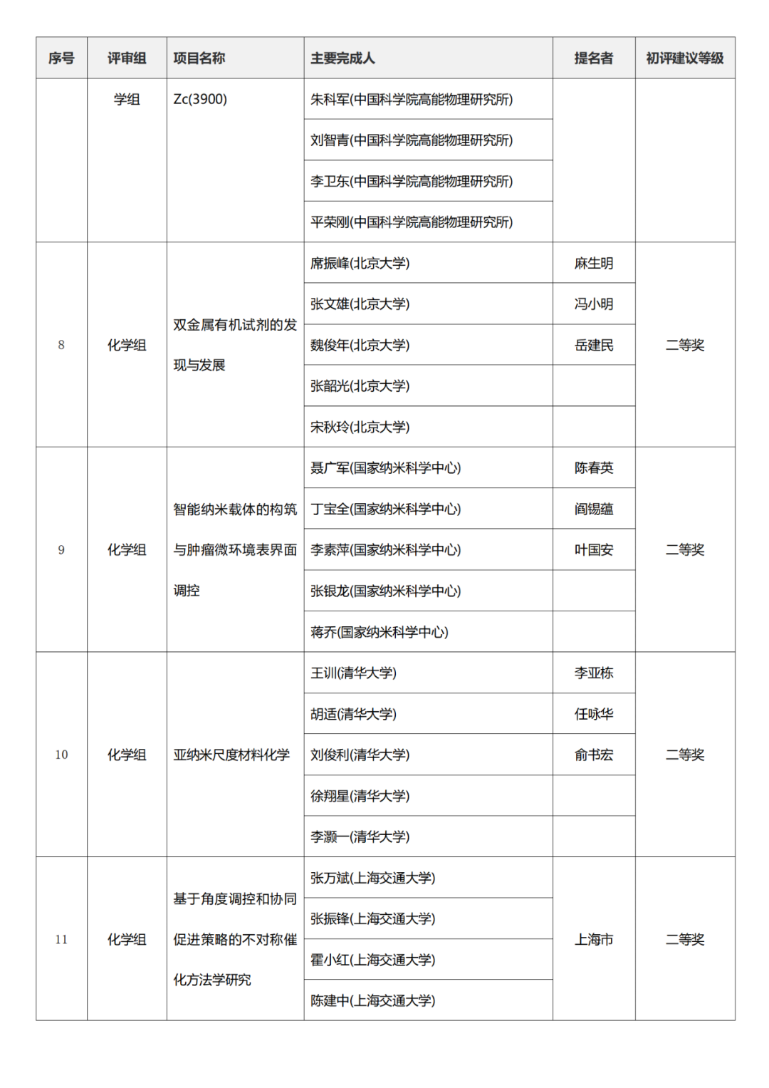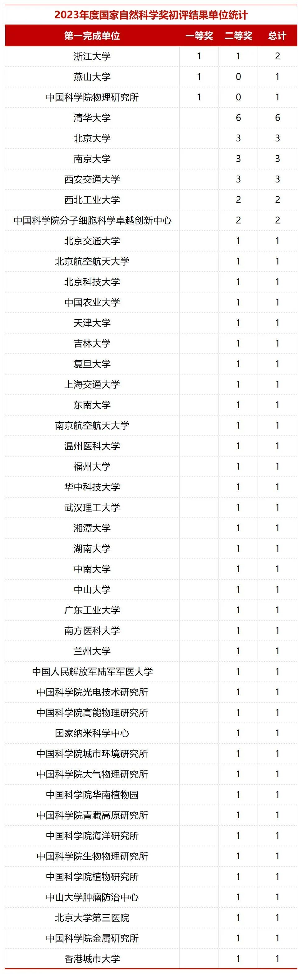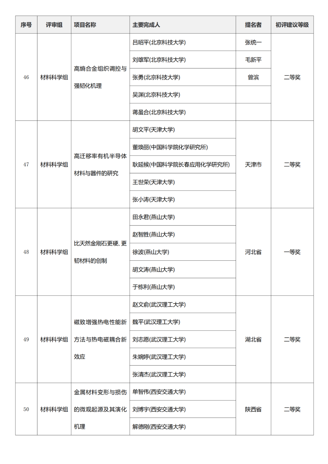 国家自然科学奖项目中,浙江大学、燕山大学初评建议等级获一等奖。