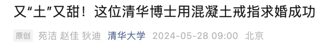 清华博士用混凝土戒指求婚成功:“就像我们的爱100年不腐蚀”