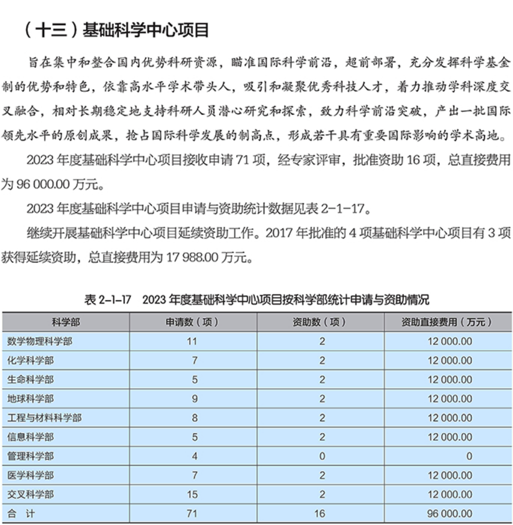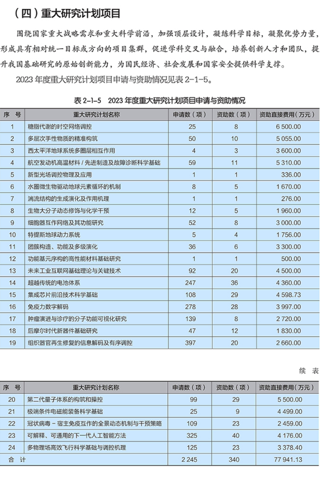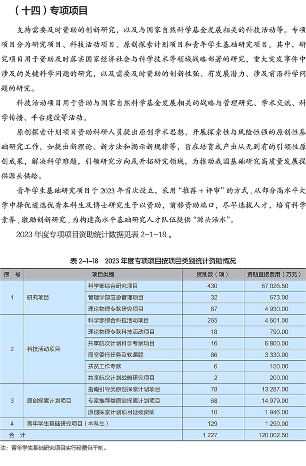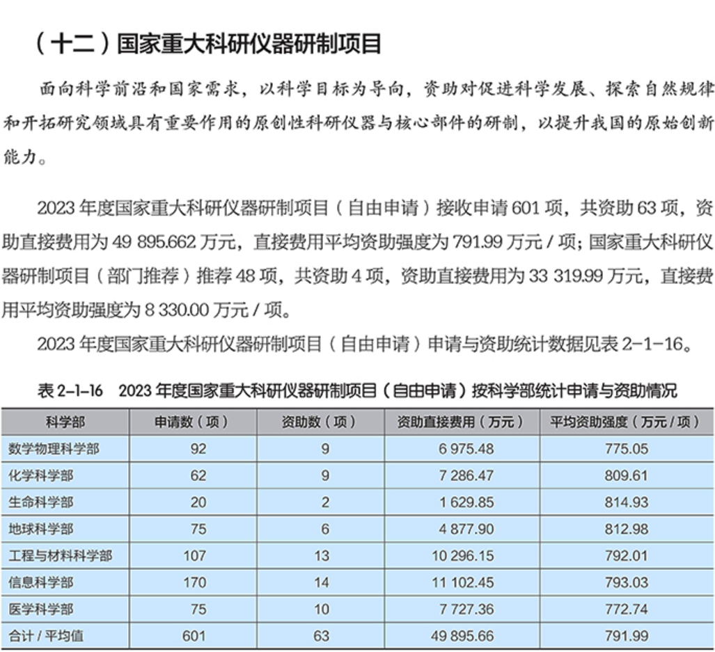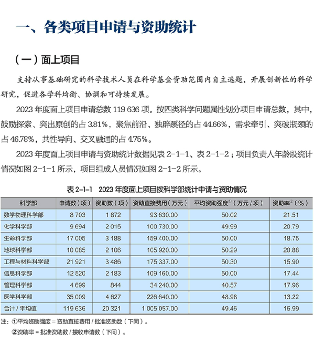 6月14日,国家自然科学基金委发布《2023年度报告》,报告显示,2023年,国家自然科学基金财政预算3419603.33万元,其中,资助项目经费预算3367270.18万元。2023年完成资助项目资金拨款3322676.76万元,其中,资助项目直接费用拨款2804360.45万元,间接费用拨款518316.31万元。2023年,国家自然科学基金资助各类项目3781890.28万元,其中,资助项目直接费用3187901.38万元,核定1215个依托单位间接费用593988.90万元。