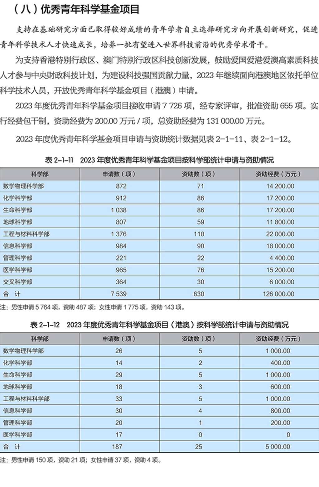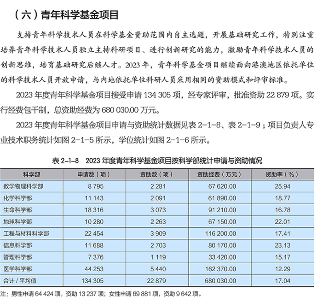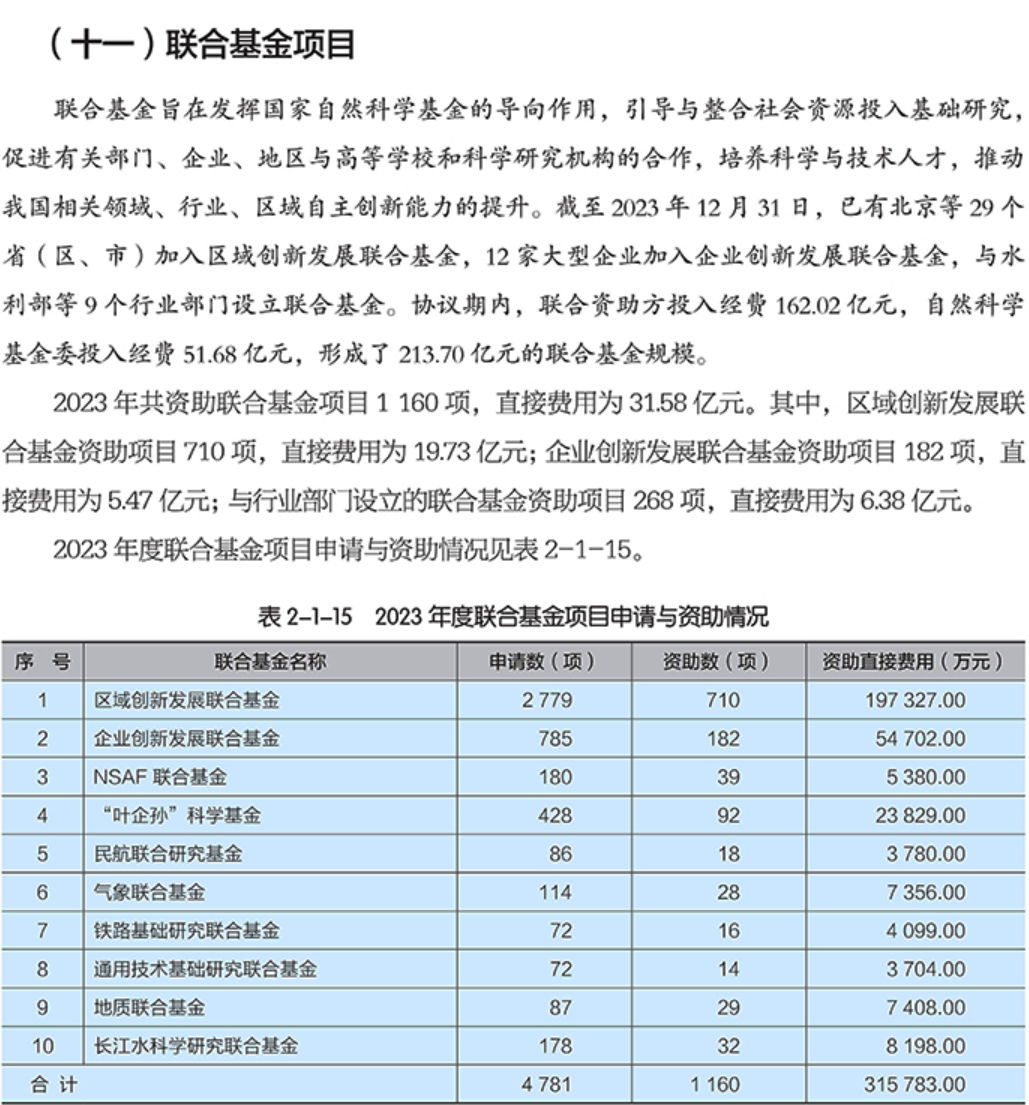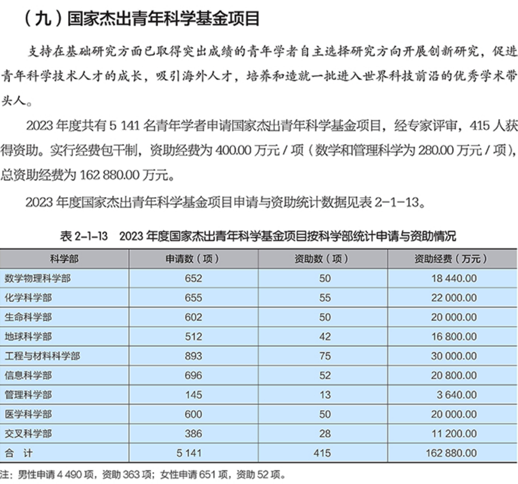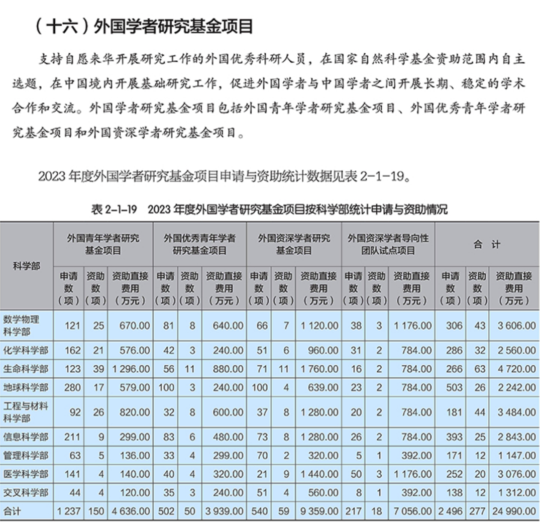6月14日,国家自然科学基金委发布《2023年度报告》,报告显示,2023年,国家自然科学基金财政预算3419603.33万元,其中,资助项目经费预算3367270.18万元。2023年完成资助项目资金拨款3322676.76万元,其中,资助项目直接费用拨款2804360.45万元,间接费用拨款518316.31万元。2023年,国家自然科学基金资助各类项目3781890.28万元,其中,资助项目直接费用3187901.38万元,核定1215个依托单位间接费用593988.90万元。
