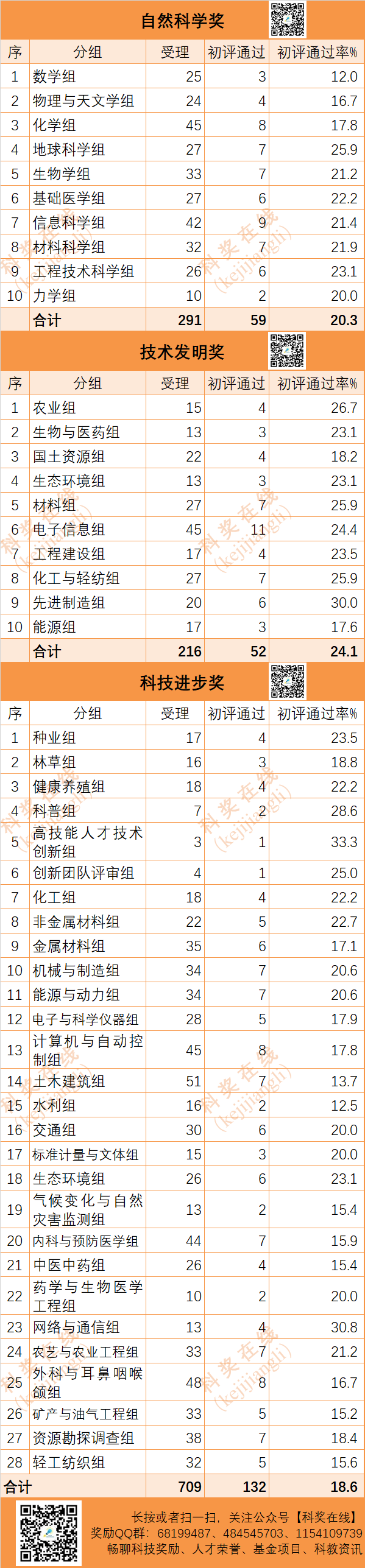 一大批项目被淘汰、被降级!因为2021年、2022年国家科技奖暂停申报的缘故,2023年度国家科技奖积累了大量的优秀成果,堪称国奖史上最难得一年,提名环节指标难拿、初评环节网评难过,答辩环节竞争激烈。整体来看,2023年度国家科技奖(通用项目)初评平均通过率20%,发明奖(通用)略高达到24.1%,进步奖略低、为18.6%。按照历年规则,在评审委员会、奖励委员会环节,仍会有大量项目落选!