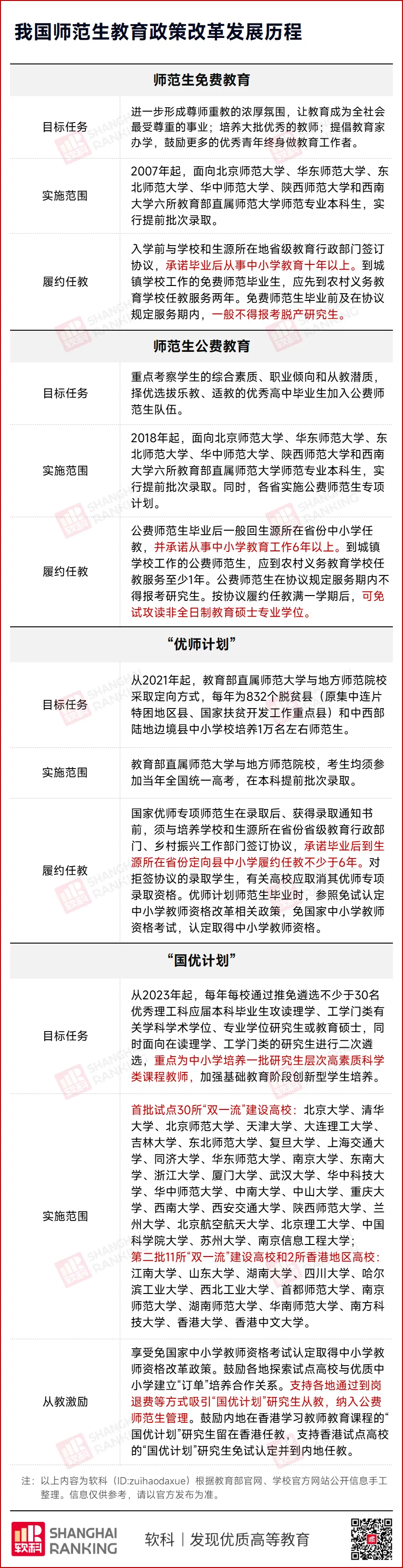 此外,2024年5月,教育部等部门发布《教育部直属师范大学本研衔接师范生公费教育实施办法》,支持公费师范生免试攻读全日制教育硕士再履约任教。在研究生一年级课程学习结束后,学生将根据本科以来的综合考核结果排序,表现优秀者优先选择任教地。