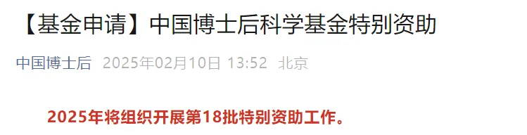 特别资助,激励在站博士后研究人员增强创新能力,对表现优秀的博士后研究人员实施的资助。由专家会议评审确定资助对象。2025年计划资助1200人,资助标准为自然科学18万元,社会科学15万元。