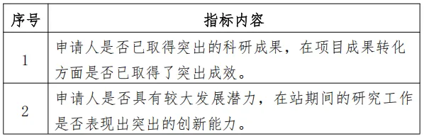 2. 已取得突出的科研成果,或在项目成果转化方面已取得较好的成效;发展潜力大,在站期间表现出较强的创新能力;无科研失信行为。