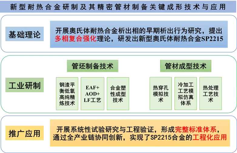 项目团队通过系统研究传统奥氏体耐热合金的强化机理与失效机制,创新性提出多相复合强化理论,开发出具有自主知识产权的SP2215合金,实现了材料服役性能的重大突破。主要创新成果包括: