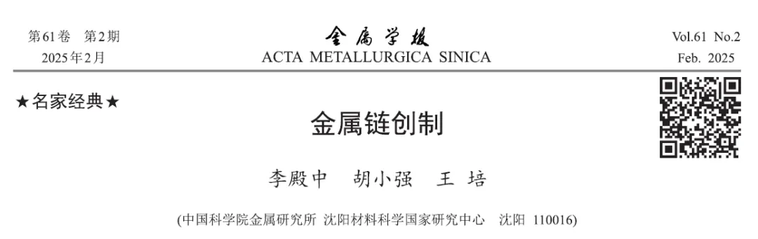 Dianzhong LI, Xiaoqiang HU, Pei WANG. Metal Chain Creation[J]. Acta Metall Sin, 2025, 61(2): 203-210.