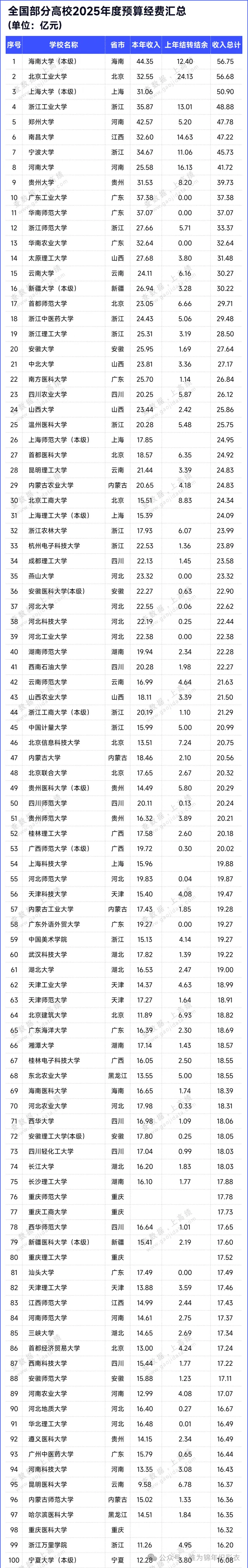 2025年已经过去了两个多月,随着新年的不断深入,各个单位今年的预算也不断出炉。这其中作为我们高校的粉丝,最关心的莫过于自己高校在今年度的预算经费情况!毕竟老话说得好,“有钱能使鬼推磨”!有了充足的经费,对于学生和老师来说,在各个方面都可以大展拳脚了!那么,就今年已经公布的各大高校的经费情况又是怎样的呢?今天就让我们一起来看看吧!