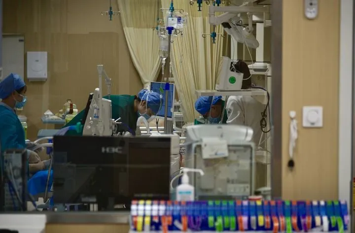 在山东大学齐鲁医院急诊科抢救室,医护人员在对危重病人进行抢救(2024年2月9日摄)。新华社记者 李志浩 摄