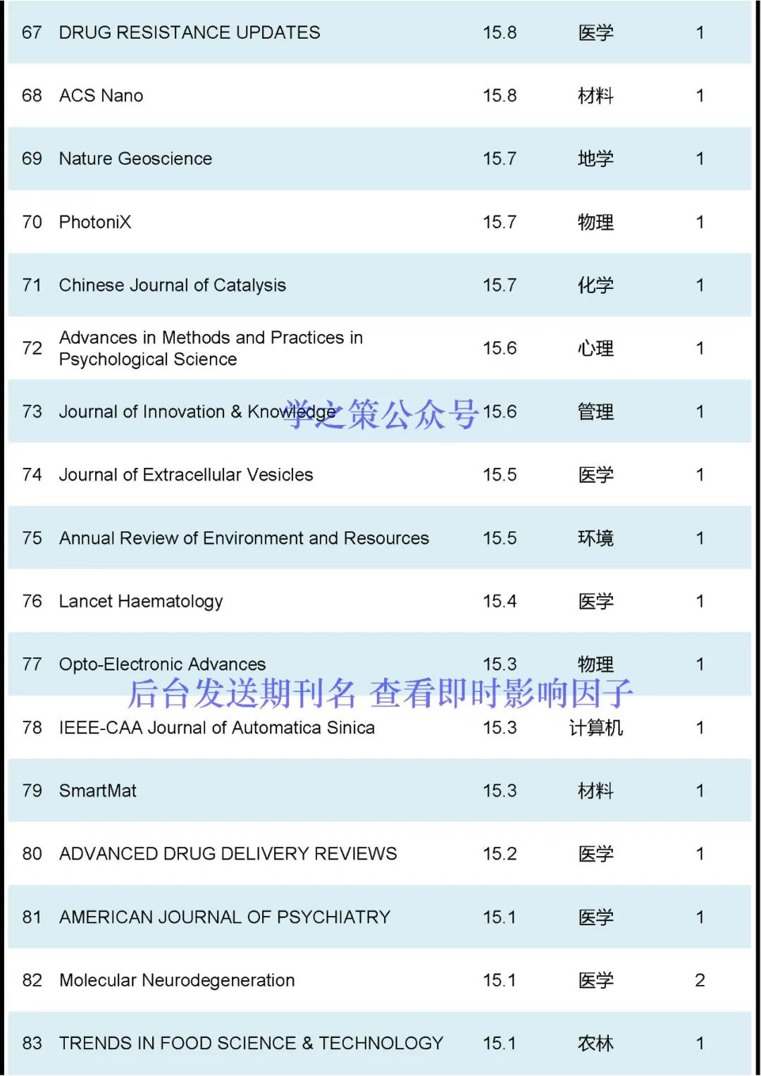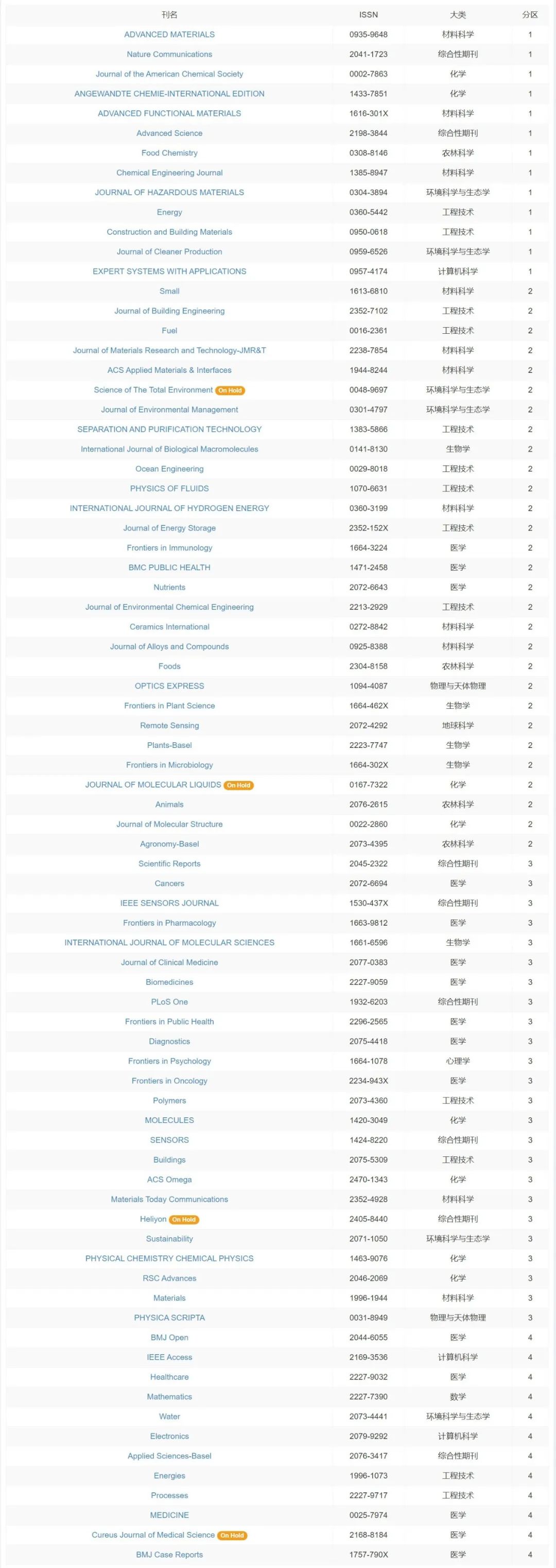 此次分区,很多老牌1区期刊掉到了2区,例如Nano Energy,Nano Letters,Separation and Purification Technology;但也有一些升到1区,例如Nano Research。总环之前被On Hold,此次分到了2区,CEJ分到了材料大类,但依然坚挺在1区,Small和ACS AMI依然是2区,Scientific Reports掉到了3区……