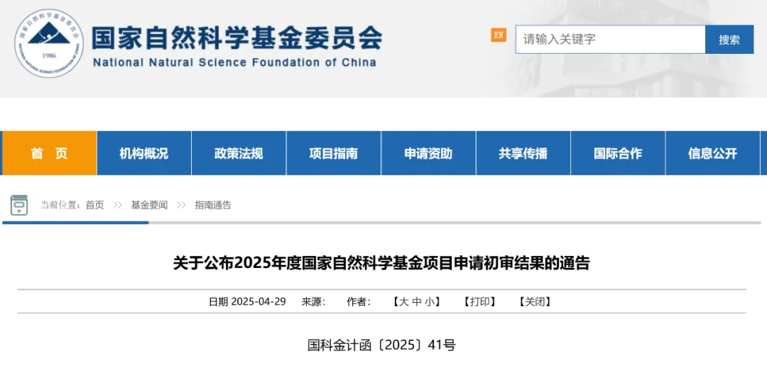 经初审,共受理项目申请432429项,不予受理项目申请997项。自然科学基金委将向各依托单位发送纸质初审结果通知,并以电子邮件形式通知不予受理项目的申请人。依托单位可登录科学基金网络信息系统查询本单位项目申请受理情况。申请人如对不予受理决定有疑问,可向相关项目管理部门咨询;如对不予受理决定有异议,可在2025年5月15日16时前向相关项目管理部门提出复审申请。有关复审申请程序和要求详见附件。