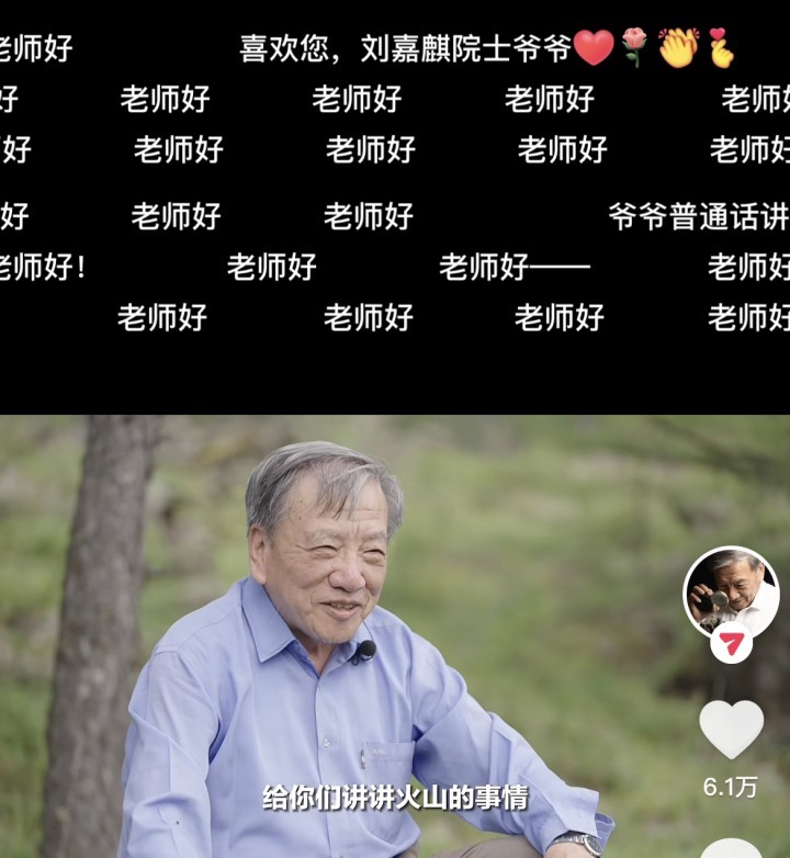 在某视频平台上,有一位备受年轻人追捧的宝藏“火山UP主”,也被亲切地称为“火山爷爷”,他就是我国第一位火山研究领域的院士,火山地质科学家刘嘉麒。83岁的刘嘉麒院士,从事地质科考60余年。到了退休年龄,别人开始享受退休生活,他却出着最密的差、熬着最深的夜,每天晚上九、十点以后是他的“夜班”时间,他会冲上一杯咖啡或浓茶,安静地工作到凌晨两点。在一次演讲中,他分享了自己对科学精神的理解:“我跟我的学生说要想靠上班的8个小时来搞科学就不要来了,科学是忙出来的,科学得下功夫。”过去数十年里,为了获得更多科研资料,刘嘉麒用脚步丈量世界,足迹遍布七大洲五大洋。他十进长白山,七上青藏高原,三入北极,两征南极,造访和考察了50多个国家和地区,率先查明了我国火山的时空分布和岩石地球化学特征,让中国新生代火山活动规律的研究处于国际前沿水平。地质科考的路并不好走。在南极考察时,除了难熬的冷,更可怕的是刺骨的风,在海岸边的旋风甚至能够将人卷进去。在喀拉喀托火山考察时,刘嘉麒与同行专家想要观察火山口的状态,结果却在快到的时候遇到了地震,这是火山即将喷发的危险信号,于是十几个考察人员惊惶地往安全地带跑,“如果跑不出来,就有危险了”。如今,科研之外,他还重视科学教育与科学普及,给全国各地中小学生做科普讲座。事实上,在“火山爷爷”的字典里,从来无惧年龄。他37岁考研、40岁学英语、80多岁还时不时跑野外,如今又成了百万粉丝的博主。尽管已经83岁,他依然活跃在科研、科普、教学的第一线。他说过:你们年轻人干的这些活儿,我差不多都能干,无非就是笨一点、慢一点。活到老,学到老。“如果放弃了科学普及的空间,伪科学就会快速占领大众的空间。”在刘嘉麒看来,科学传播也是科学家的天职,科学家有义务肩负起这份社会责任和历史责任,在科学传播和科学普及中做出贡献。他认为,科普大致分两种类型,一种是搞科研的人把自己所学的专业知识讲给公众,一种是将其他专业知识“再包装”传播。“包装很重要,但科学基本原理、方法和应用不能走样、掺假。”在短视频里,他用生动形象的语言讲述火山和地质相关知识,让复杂的地质学知识不再枯燥艰涩。岩浆就像我们日常喝的“疙瘩汤”,熔岩冢就像蒸熟了的大“馒头”……有小朋友提问,为什么会有火山从地球里喷发出来。刘嘉麒院士回复说,地球就像一个生命体,火山喷发类似地球长了痘痘、化脓了。这样的科普方式,让很多家长、老师点赞。在刘嘉麒账号的评论区里,很多粉丝留言,向院士爷爷提出各种五花八门的问题,“火山泥真的可以清洁毛孔吗”“在火山附近呆久了会有危害吗”,这些留言开头都是“爷爷爷爷”。有网友评价:仿佛在院士评论区看到一堆葫芦娃。“我感到荣幸,自己学到一点知识,能够把它再传播给大众,这是我们作为一个学者的一个责任。如果广大青年人对我讲述的一些东西感兴趣,对我来说是一个鼓励,也是一个促进。”刘嘉麒欣然道。现在刘嘉麒依旧很忙,经常在路上。不出差的日子,就扫一辆共享单车,骑到中国科学院地质与地球物理研究所来上班。他说:“趁着现在还没糊涂,想再做点事。”带学生,就是他当前最重要工作之一。能万里挑一考进中国科学院的,他觉得都可以算是“人才”,重点在于如何塑造和培养这些人。刘嘉麒认为,因材施教是最好的教育。学生入学,他都要谈心,问学生:“人的路径大致分为三类,从政、从商、做学问,你想走哪条路?”然后他再根据学生的想法,帮其设定计划。“我也是从那时候走过来的。” 刘嘉麒虽然时常念叨,现在年轻人不如老一辈能吃苦,但他想想又说:“也不想让你们吃我们的苦。”所以现在,他尽量帮年轻人“开路”,再扶上马,送一程。