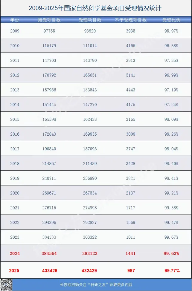 25年国自然基金项目申请初审结果公布!附:09-25年度初审结果统计